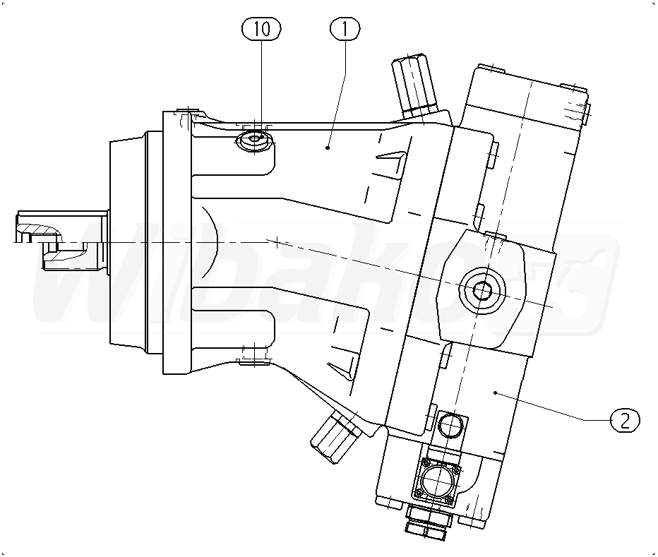 Axial piston variable motor A6VM Series 63. Geometric displacement 355 cm3. Control device: proportional control, electric, U = 24 V. Setting ranges for displacement: Vg min = 0.4 to 0.8 Vg max Vg max = Vg max to 0.8 Vg max. Sealing material: FKM (fluoroelastomer). Parallel keyed shaft DIN 6885. Mounting flange ISO 3019-2, 8-hole. Port plate for working line: SAE working ports A and B at rear, without valve.