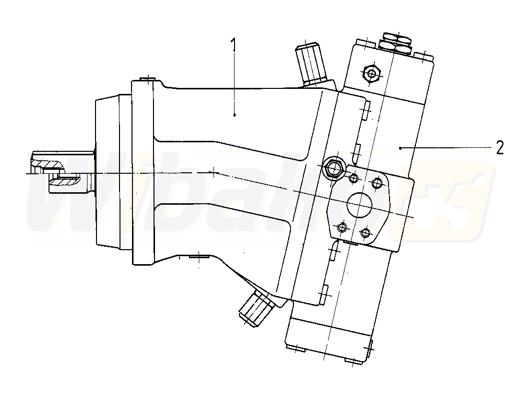 Axial piston variable motor A6VM Series 63. Geometric displacement 500 cm3. Control device: automatic control, speed related, Setting ranges for displacement: Vg min = 0 to 0.4 Vg max Vg max = Vg max to 0.8 Vg max. Parallel keyed shaft DIN 6885. Mounting flange ISO 3019-2, HDD speed sensor mounted.