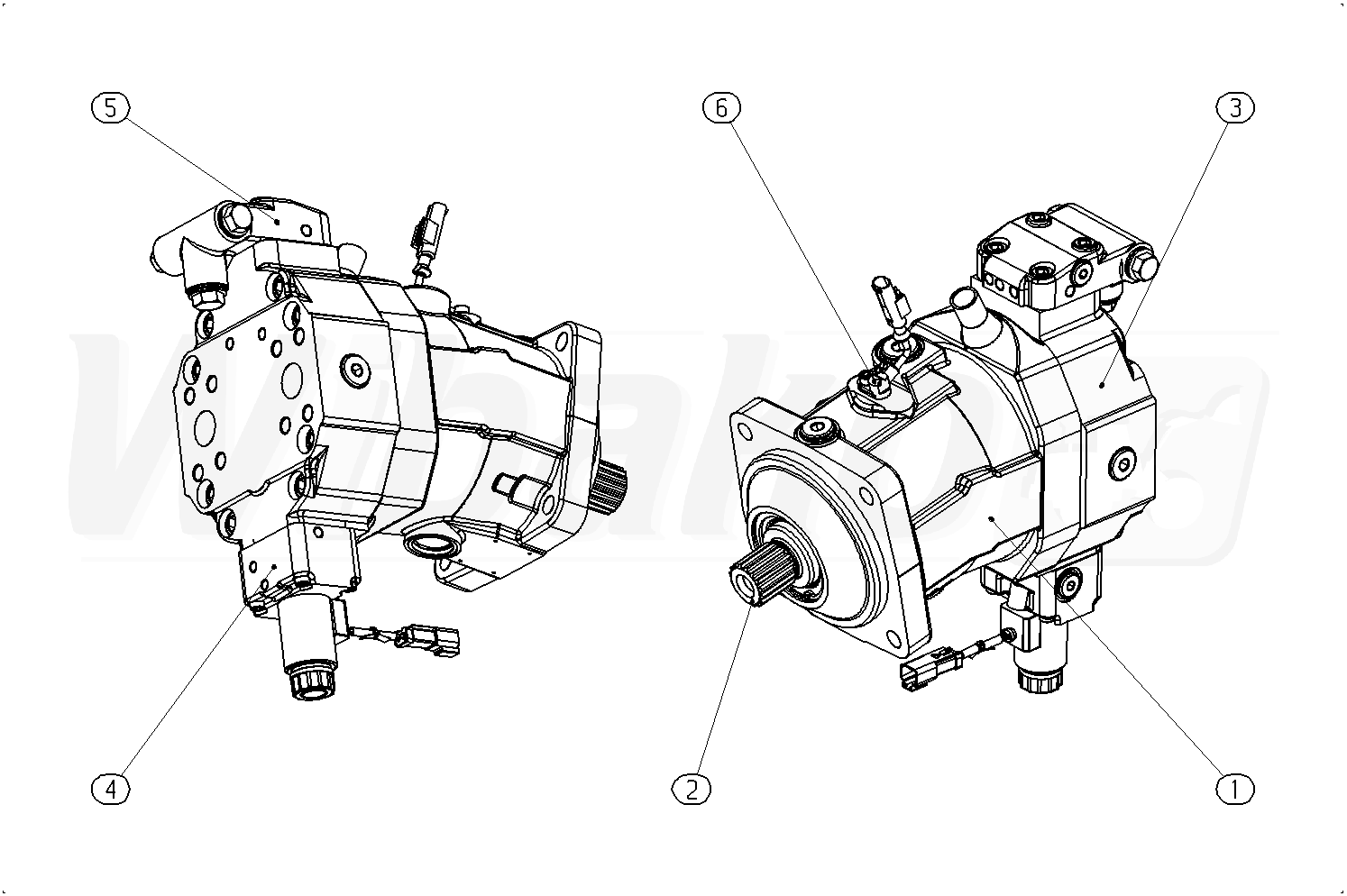 Axial piston variable motor A6VM Series 65. Geometric displacement 080 cm3. Control device: proportional control, electrical, positive control, U = 12 V. Without pressure control/override. Metric, port threads with O-ring sealing according to ISO 6149. Sealing material: FKM (fluoroelastomer). Standard shaft bearing. Mounting flange ISO 3019-2 140-4. Splined shaft W35×2×16×9g. SAE working ports A and B at rear. With flushing and boost pressure valve, mounted flushing on both sides, flushing flow at: Δp = pND ‒ pG = 25 bar and v = 10 mm2/s (pND = low pressure, pG = case pressure). Flushing flow: 14. With speed sensor DSM/DSA mounted. Special version.