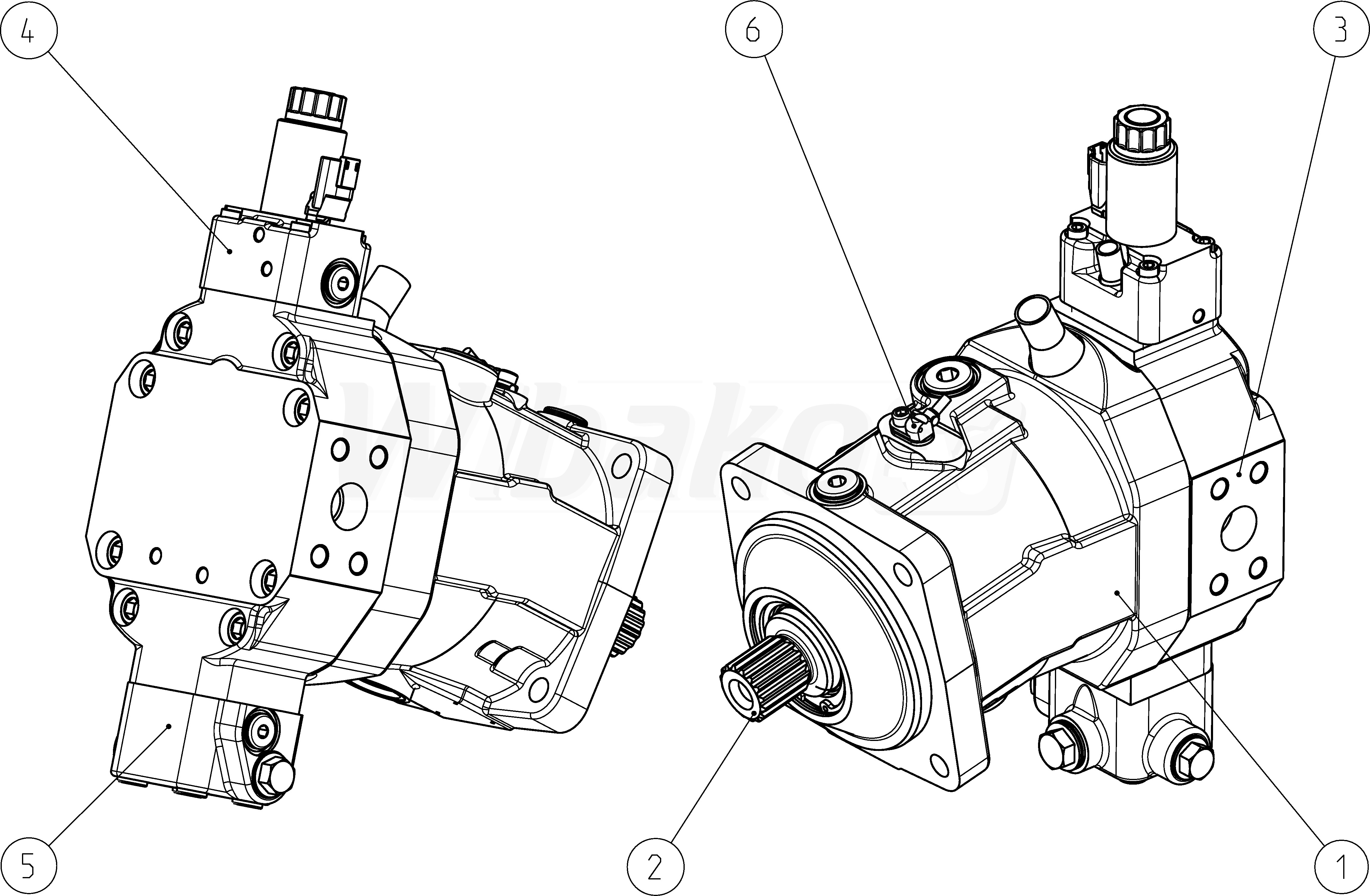 Axial piston variable motor A6VM Series 65. Geometric displacement 080 cm3. Control device: proportional control, electrical, negative control, U = 12 V. Without pressure control/override. Connector for solenoids: DEUTSCH - molded connector, 2-pin, without suppressor diode. Without additional function. Without damping. Setting range for displacement: Without Vg max setting screw, extra long Vg min setting screw. Metric, port threads with O-ring sealing according to ISO 6149. Sealing material: FKM (fluoroelastomer). Standard shaft bearing. Mounting flange ISO 3019-2 140-4. Splined shaft W35×2×16×9g. SAE working ports A and B at side, opposite. With flushing and boost pressure valve, mounted flushing on both sides, flushing flow at: Δp = pND ‒ pG = 25 bar and v = 10 mm2/s (pND = low pressure, pG = case pressure). Flushing flow: 8. With speed sensor DSM/DSA mounted. Standard version .