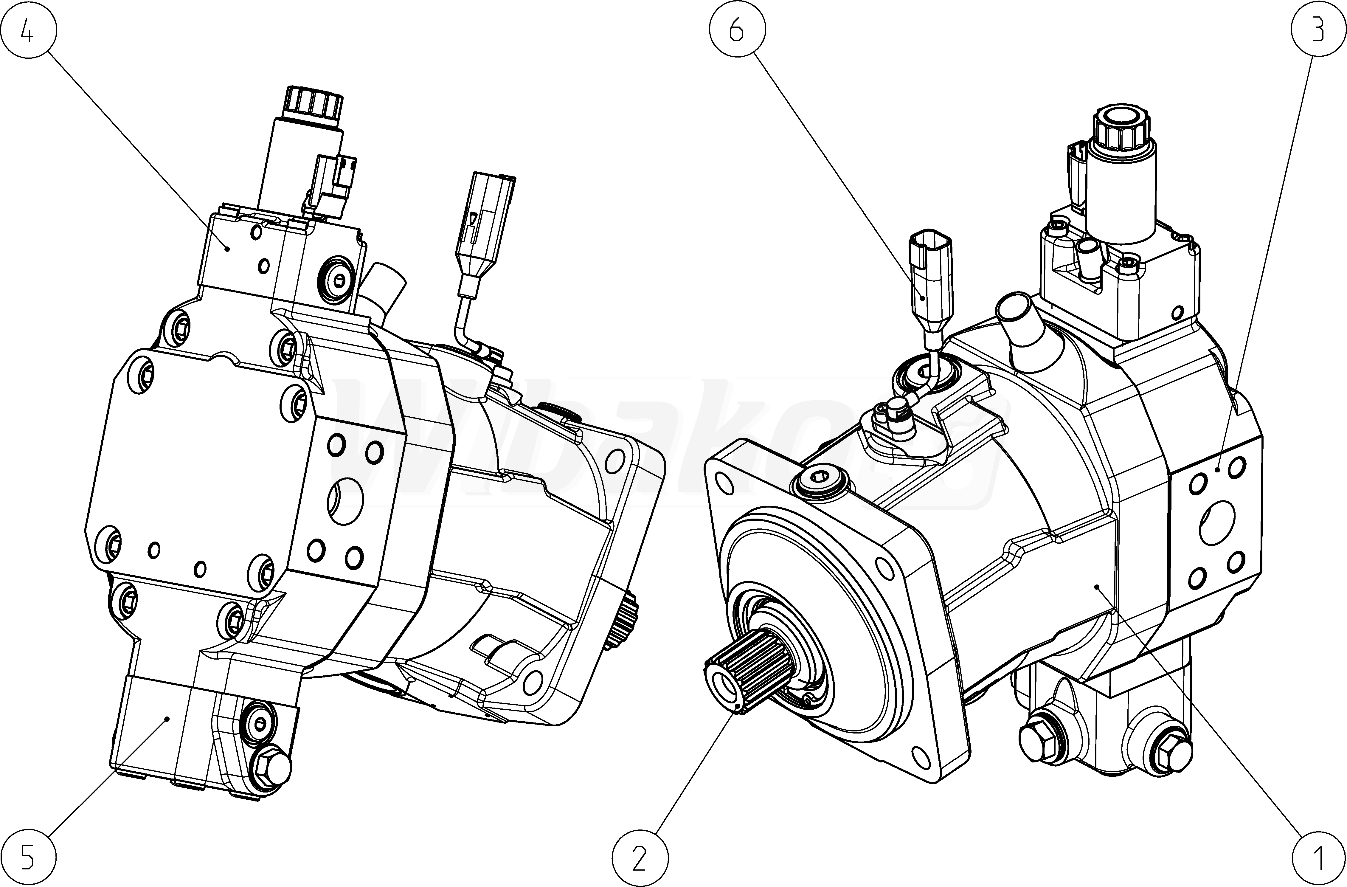 Axial piston variable motor A6VM Series 65. Geometric displacement 080 cm3. Control device: proportional control, electrical, negative control, U = 24 V. Without pressure control/override. Connector for solenoids: DEUTSCH - molded connector, 2-pin, without suppressor diode. Without additional function. Without damping. Setting range for displacement: Without Vg max setting screw, short (0-adjustable) Vg min setting screw. Metric, port threads with O-ring sealing according to ISO 6149. Sealing material: FKM (fluoroelastomer). Standard shaft bearing. Mounting flange ISO 3019-2 140-4. Splined shaft W35×2×16×9g. SAE working ports A and B at side, opposite. With flushing and boost pressure valve, mounted flushing on both sides, flushing flow at: Δp = pND ‒ pG = 25 bar and v = 10 mm2/s (pND = low pressure, pG = case pressure). Flushing flow: 5. With speed sensor DSM/DSA mounted. Standard version .