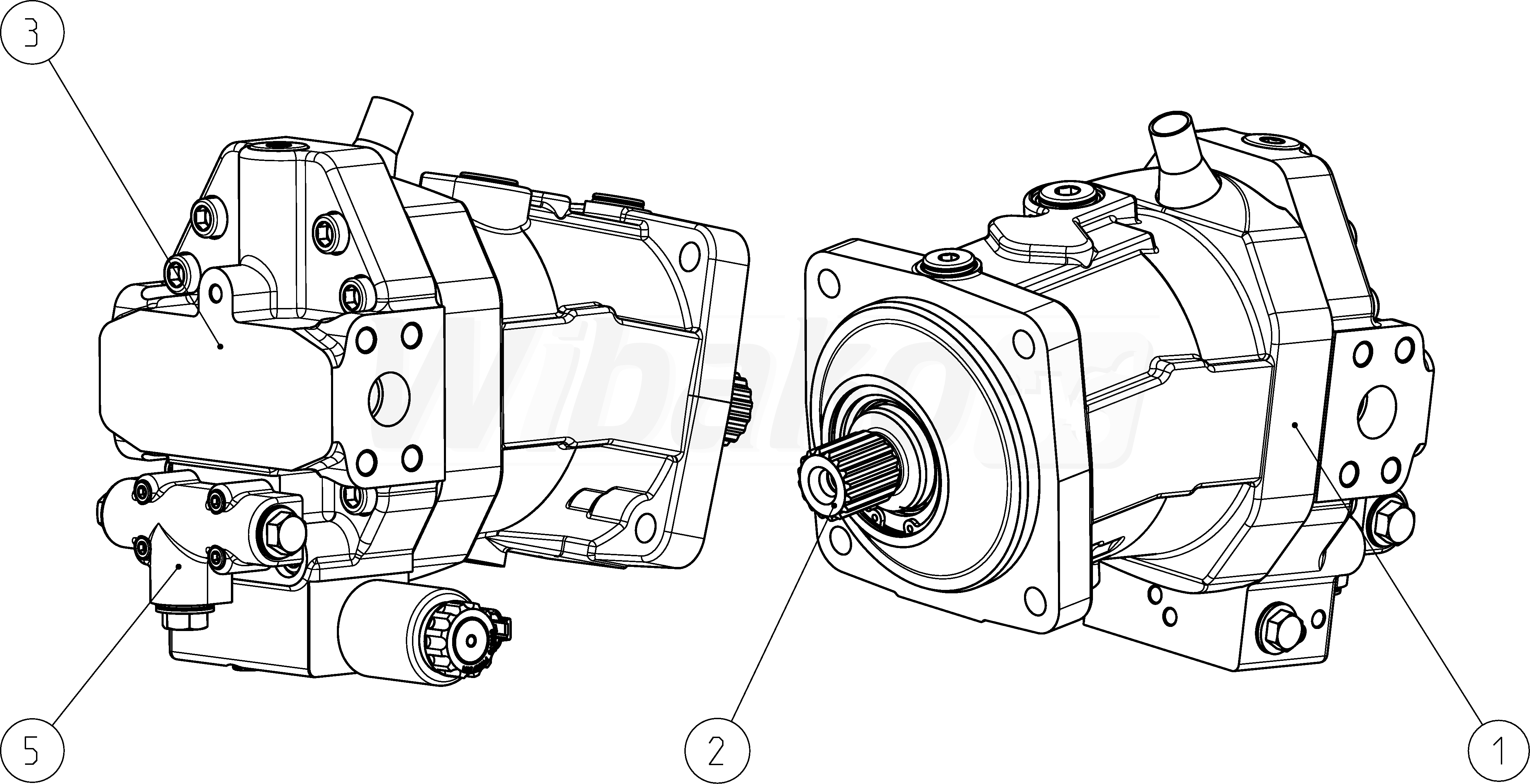 Axial piston variable motor A6VM Series 65. Geometric displacement 080 cm3. Control device: two-point control, electrical, negative control, U = 24 V. Without pressure control/override. Connector for solenoids: DEUTSCH - molded connector, 2-pin, without suppressor diode. Without additional function. Damping with counterbalance valve BVD/BVE. Setting range for displacement: Without Vg max setting screw, medium (0-adjustable) Vg min setting screw. Metric, port threads with O-ring sealing according to ISO 6149. Sealing material: FKM (fluoroelastomer). Standard shaft bearing. Mounting flange ISO 3019-2 140-4. Splined shaft W35×2×16×9g. SAE working ports A and B at side, opposite. With flushing and boost pressure valve, mounted flushing on both sides, flushing flow at: Δp = pND ‒ pG = 25 bar and v = 10 mm2/s (pND = low pressure, pG = case pressure). Flushing flow: 3,5. Without speed sensor. Standard version .