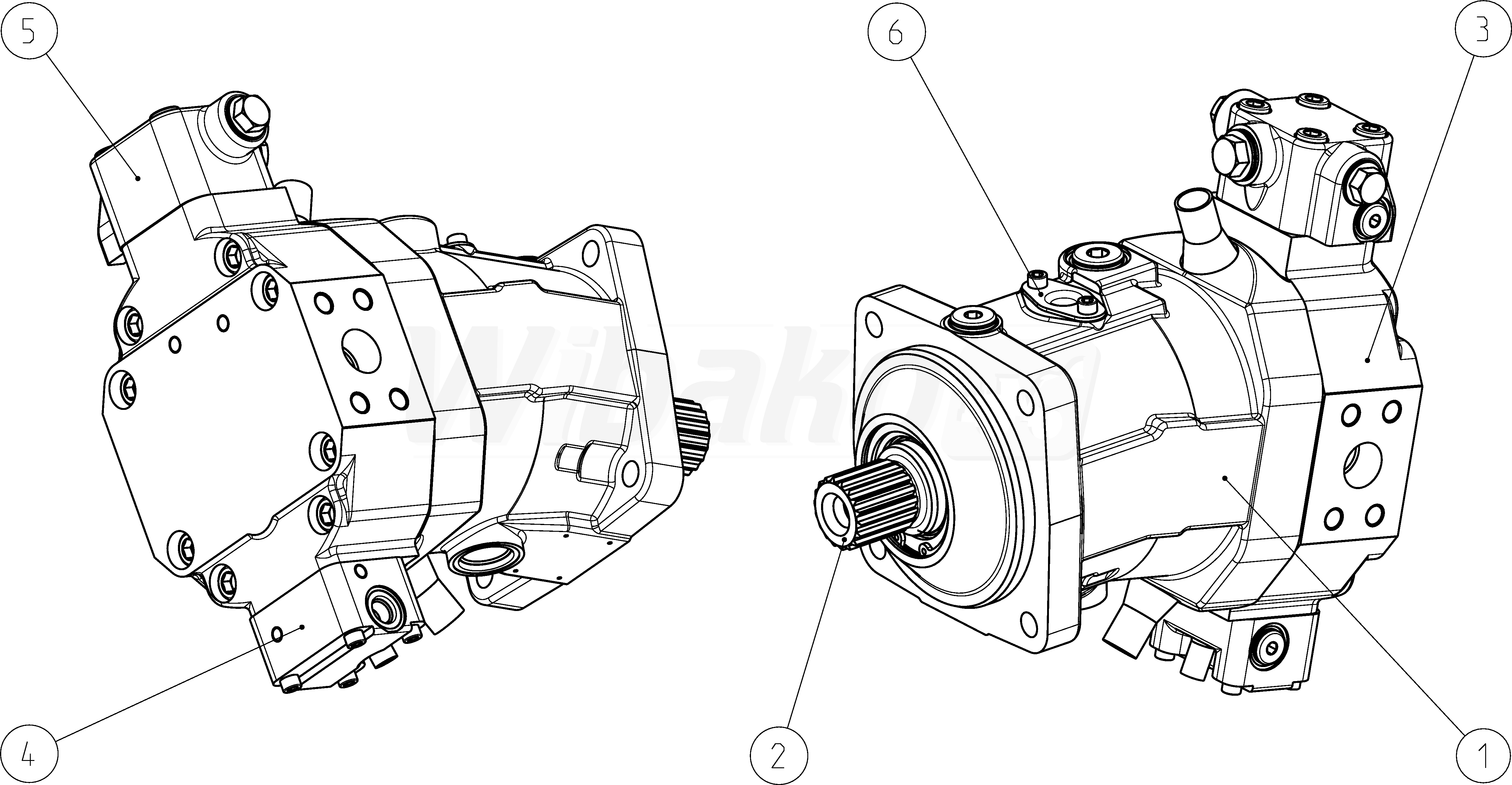 Axial piston variable motor A6VM Series 65. Geometric displacement 080 cm3. Control device: automatic control, high-pressure related, positive control, with pressure increase Δp = 100 bar. Metric, port threads with O-ring sealing according to ISO 6149. Sealing material: FKM (fluoroelastomer). Standard shaft bearing. Mounting flange ISO 3019-2 140-4. Splined shaft W40×2×18×9g. SAE working ports A and B at side, opposite. With flushing and boost pressure valve, mounted flushing on both sides, flushing flow at: Δp = pND ‒ pG = 25 bar and v = 10 mm2/s (pND = low pressure, pG = case pressure). Flushing flow: 8. Standard version .