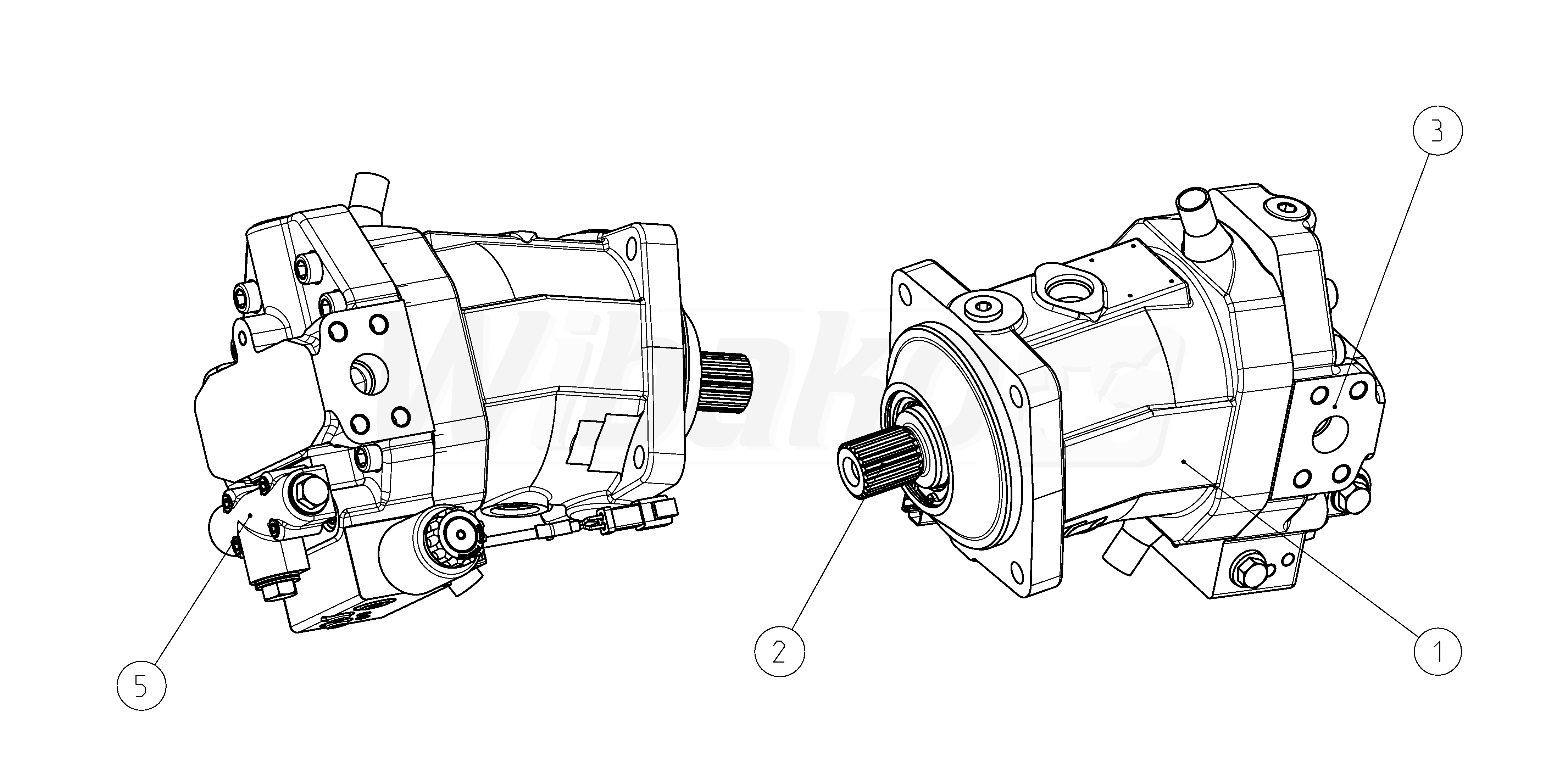 Axial piston variable motor A6VM Series 63. Geometric displacement 80 cm3. Control device: two-point control, electric, U = 12 V. Sealing material: FKM (fluoroelastomer). Mounting flange ISO 3019-2, 4-hole. Port plate for working line: SAE working ports A and B lateral, opposite, flushing and boost-pressure valve, mounted. Without speed sensor.