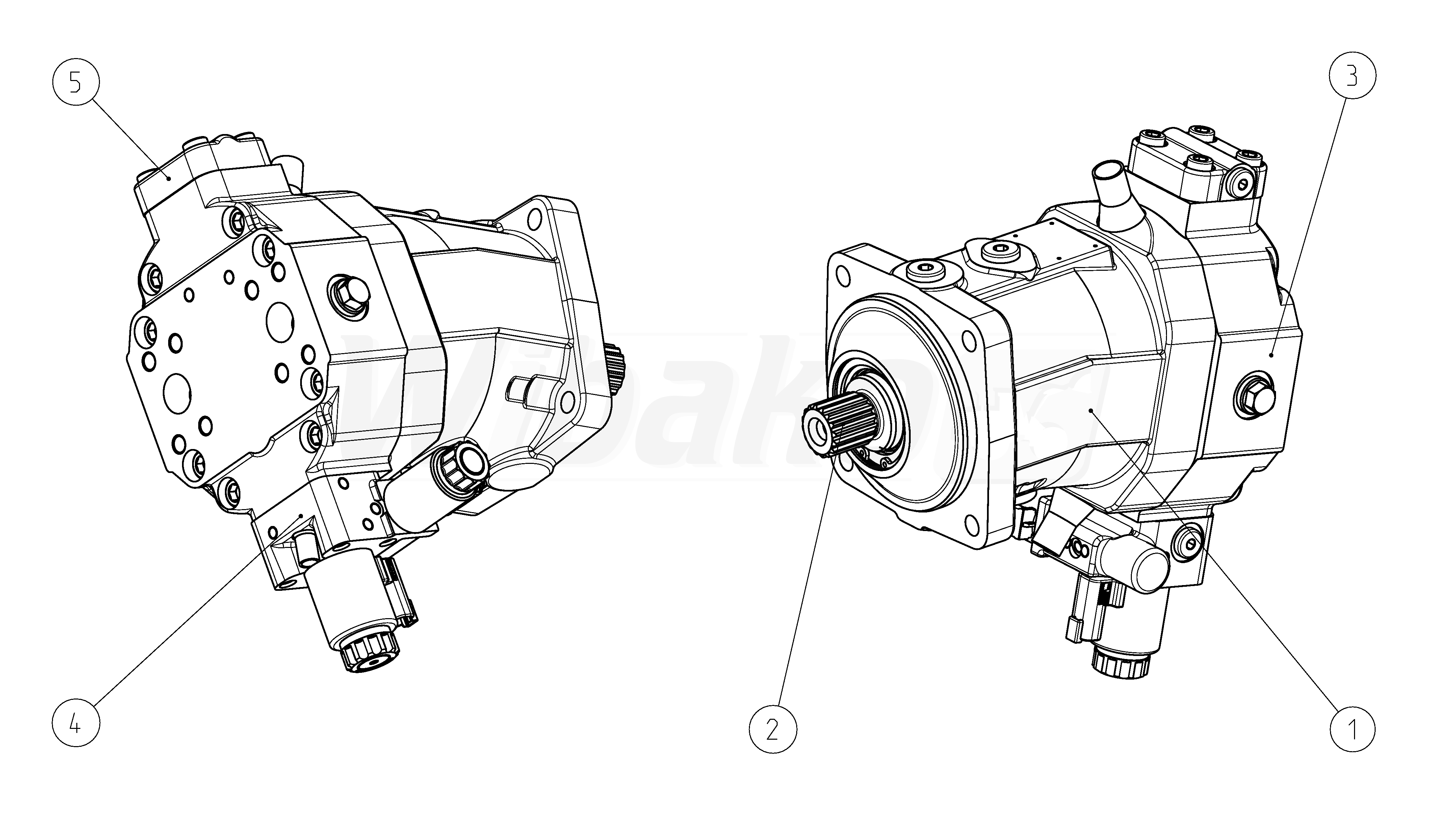 Axial piston variable motor A6VM Series 63. Geometric displacement 80 cm3. Control device: automatic control, high-pressure related, with minimum pressure increase Δp ≤ approx. 10 bar. Sealing material: FKM (fluoroelastomer). Splined shaft DIN 5480. Mounting flange ISO 3019-2, 4-hole. Port plate for working line: SAE working ports A and B at rear, without valve. Without speed sensor. DEUTSCH molded connector, 2-pin – without suppressor diode. Beginning of control at Vg min. Special version.