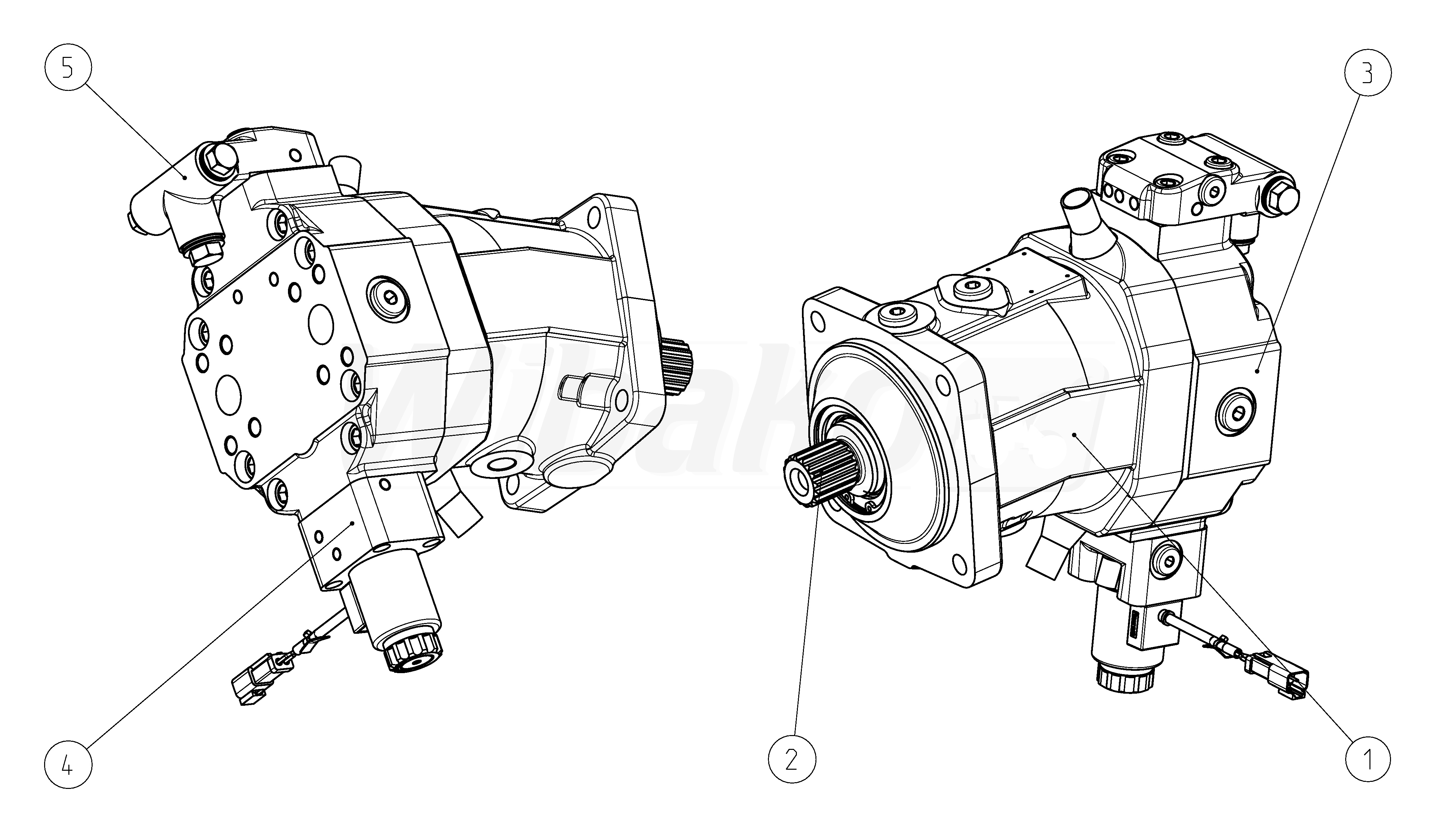 Axial piston variable motor A6VM Series 63. Geometric displacement 80 cm3. Control device: automatic control, high-pressure related, with minimum pressure increase Δp ≤ approx. 10 bar. Sealing material: FKM (fluoroelastomer). Splined shaft DIN 5480. Mounting flange ISO 3019-2, 4-hole. Without speed sensor.