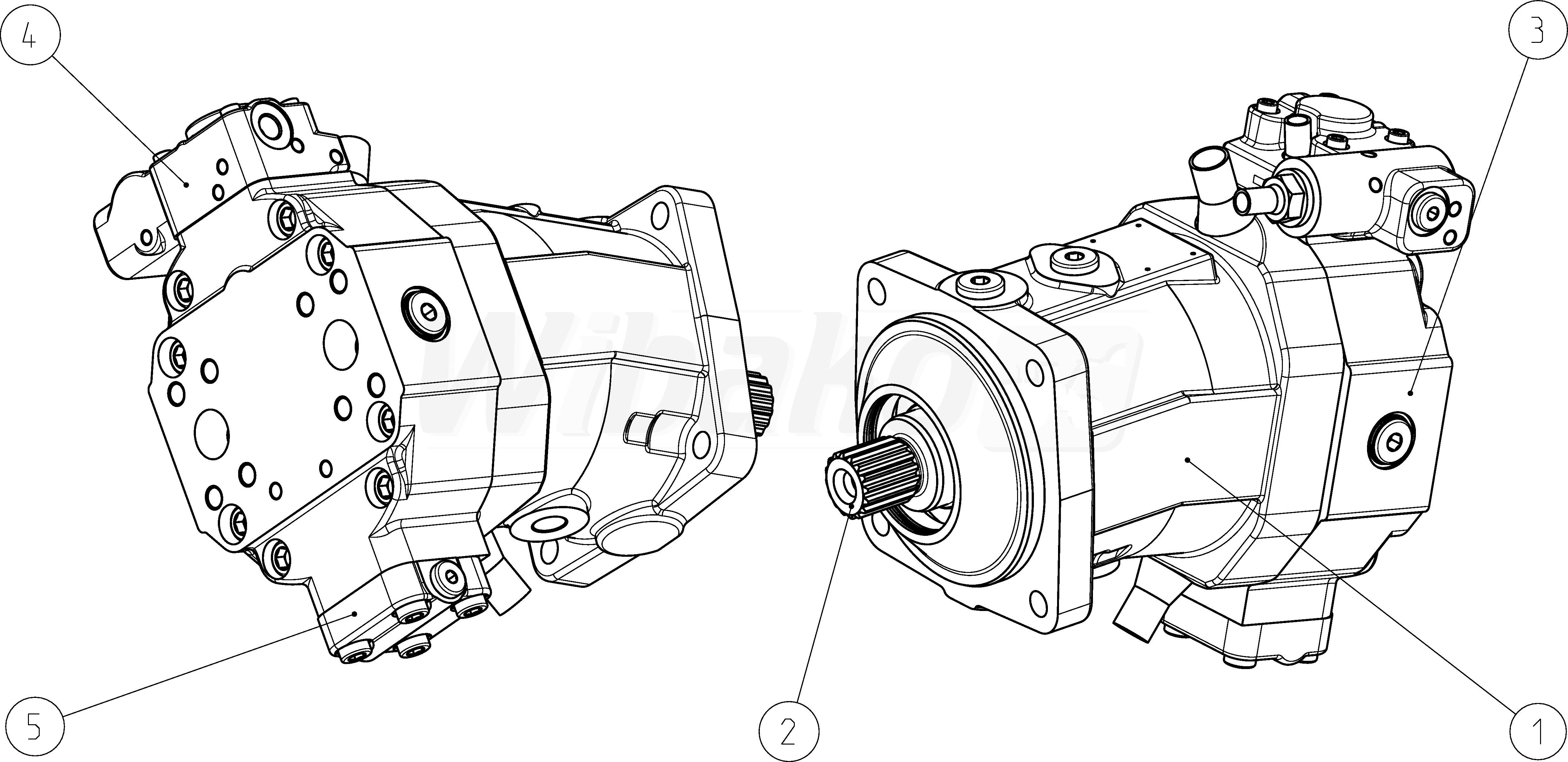 Axial piston variable motor A6VM Series 63. Geometric displacement 80 cm3. Control device: proportional control, hydraulic, Mounting flange ISO 3019-2, Beginning of control at Vg max.