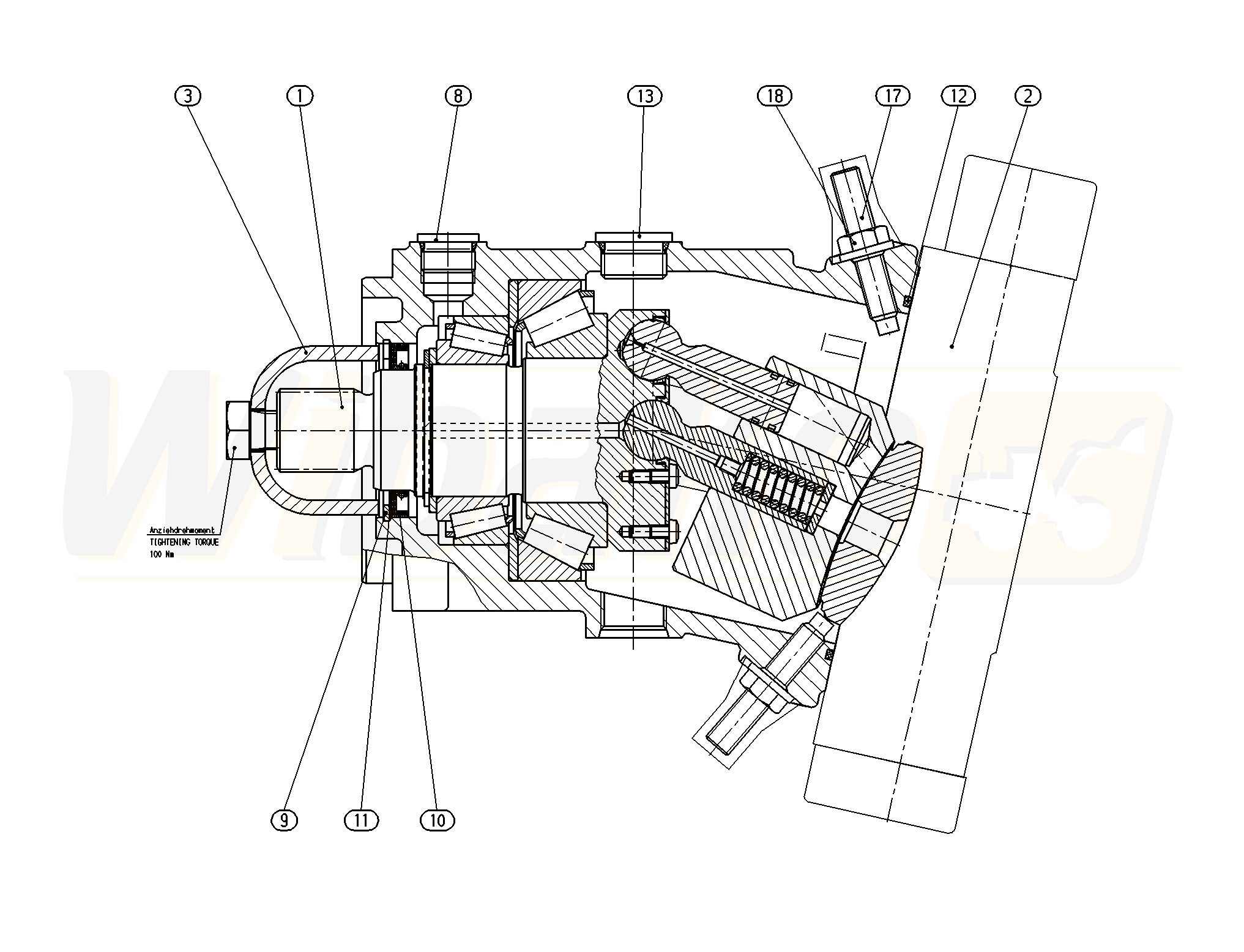 Axial piston variable motor A6VM Series 63. Geometric displacement 160 cm3. Control device: proportional control, hydraulic, Sealing material: FKM (fluoroelastomer). Splined shaft ANSI B92.1a. Mounting flange ISO 3019-2, SAE J744 ‒ 4-bolt 165-4.
