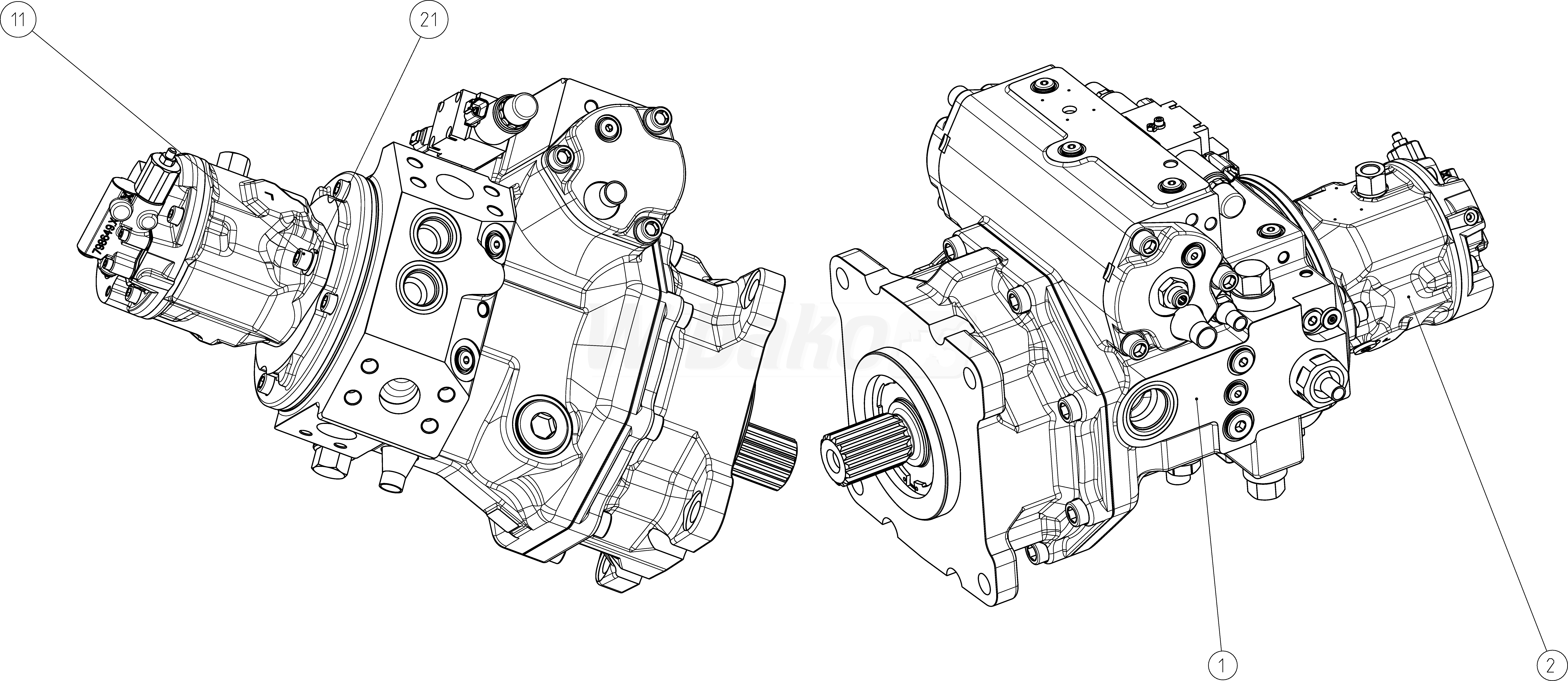 1. Axial piston variable pump A4VG, swashplate design, nominal pressure 450 bar, maximum pressure 500 bar. Pump, closed circuit. Geometric displacement 280 cm3. Series 40. Metric ports according to ISO 6149 with O-ring seal, metric fastening thread according to DIN 13. Direction of rotation: counter-clockwise (viewed on drive shaft).