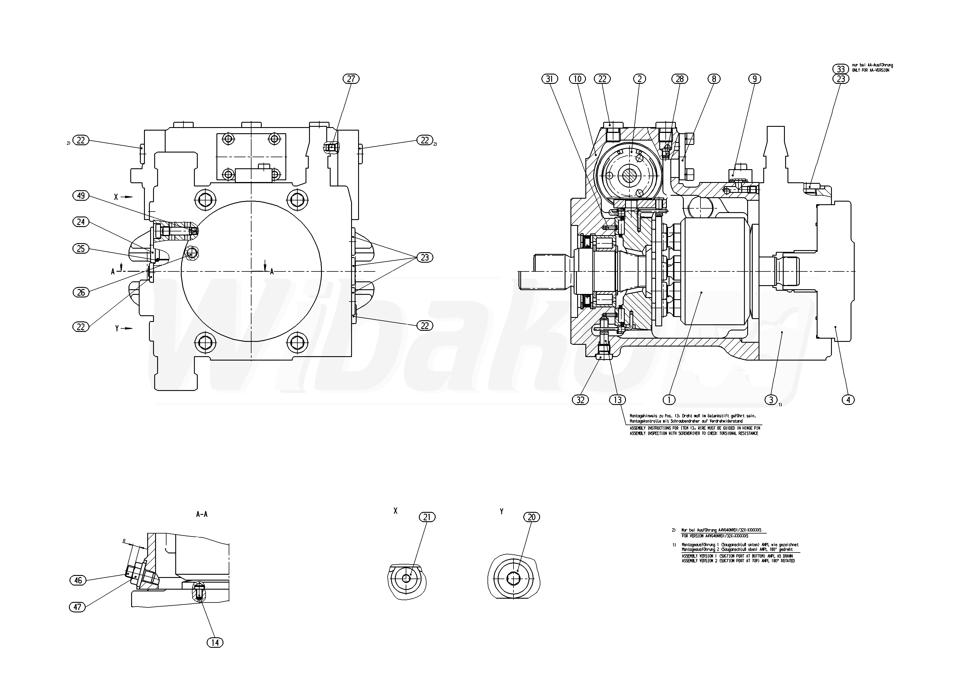 Axial piston variable pump A4VG. Geometric displacement 40 cm3. Without control module. Pressure cut-off. Without DA control valve. Series 3, index 2. Direction of rotation (viewed on drive shaft): counter-clockwise. Sealing material: NBR (nitrile rubber), shaft seal in FKM (fluoroelastomer). Splined shaft ANSI B92.1a for single pump. Mounting flange SAE J744 2-hole. Integrated boost pump. Without through drive. High-pressure relief valve, direct operated, fixed setting 250 to 420 bar without bypass. Filtration in the boost pump suction line.