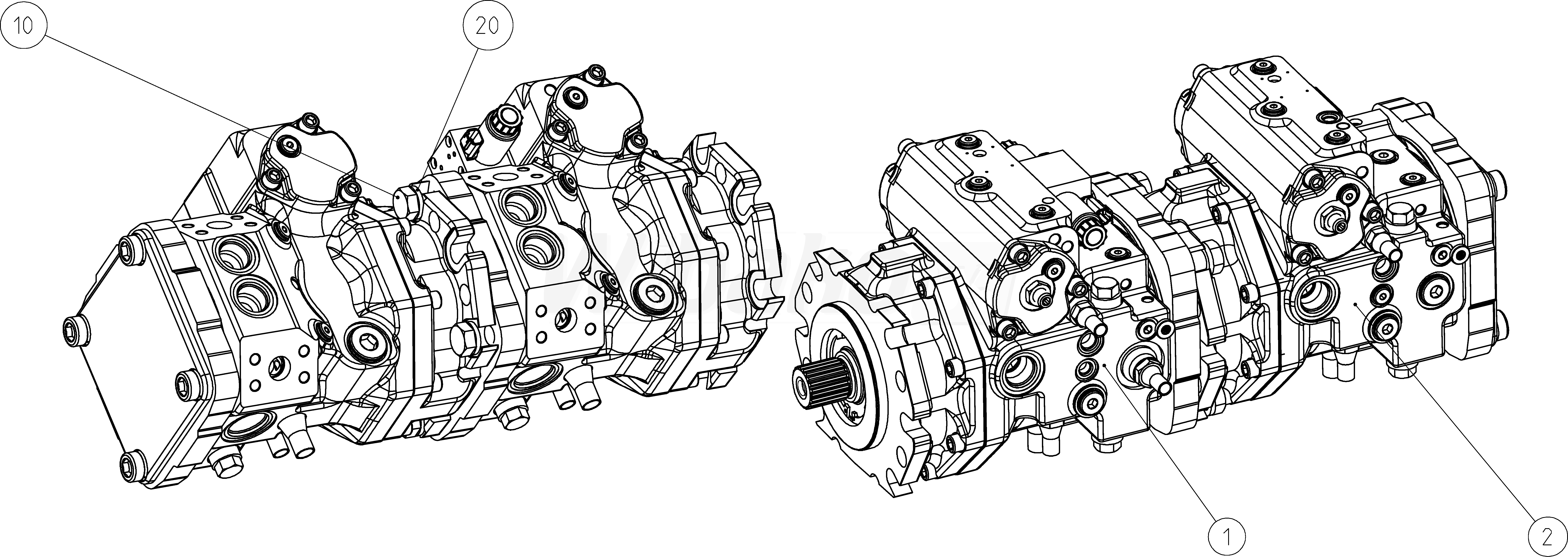 2. Axial piston variable pump A4VG, swashplate design, nominal pressure 450 bar, maximum pressure 500 bar. Pump, closed circuit. Geometric displacement 110 cm3. Hydraulic control, direct operated. Series 40. Metric ports according to ISO 6149 with O-ring seal, metric fastening thread according to DIN 13. Direction of rotation: counter-clockwise (viewed on drive shaft).