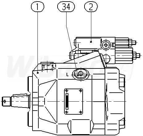 Axial piston variable pump A10VO, swashplate design, open circuit, nominal pressure 250 bar, maximum pressure 315 bar. Series 52. Geometric displacement 45 cm3. Pressure controller with pressure cut-off, hydraulic, remote controlled. Directions of rotation: clockwise (viewed on drive shaft). Seal: FKM (fluoroelastomer). Mounting flange ISO 3019-1 (SAE) 2-hole.