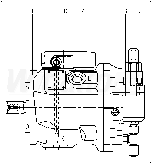Axial piston variable pump , swashplate design, open circuit, nominal pressure 280 bar, maximum pressure 350 bar. Series 31. High-speed version. Geometric displacement 10 cm3. Drive splined shaft ANSI B92.1a. Mounting flange ISO 3019-1 (SAE) 2-hole. SAE flange ports according to J518 Working ports UNF. Fastening thread UNF; rear, not for through drive. Without through drive.