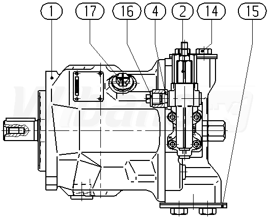 Axial piston variable pump A10VS, swashplate design, open circuit, nominal pressure 280 bar, maximum pressure 350 bar. Series 31. Geometric displacement 100 cm3. Pressure controller with pressure cut-of, hydraulic, remote controlledSealing material: FKM (fluoroelastomer). DEUTSCH - molded connector, 2-pin, without suppressor diode.