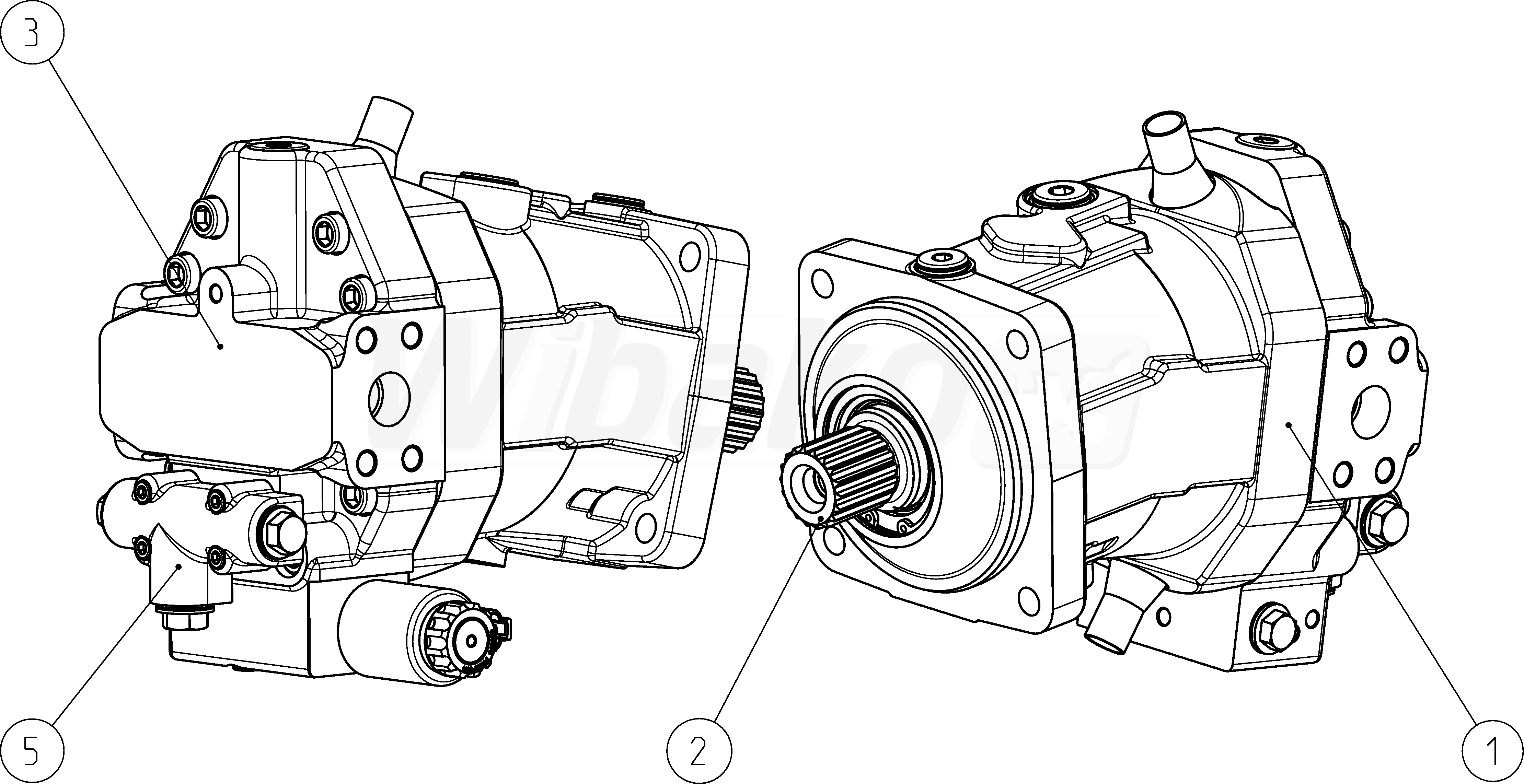Axial piston variable motor A6VM Series 65. Geometric displacement 080 cm3. Control device: two-point control, electrical, negative control, U = 24 V. Without pressure control/override. Connector for solenoids: DEUTSCH - molded connector, 2-pin, without suppressor diode. Without additional function. Damping with counterbalance valve BVD/BVE. Setting range for displacement: Short Vg max setting screw, medium (0-adjustable) Vg min setting screw. Metric, port threads with O-ring sealing according to ISO 6149. Sealing material: FKM (fluoroelastomer). Standard shaft bearing. Mounting flange ISO 3019-2 140-4. Splined shaft W40×2×18×9g. SAE working ports A and B at side, opposite. With flushing and boost pressure valve, mounted flushing on both sides, flushing flow at: Δp = pND ‒ pG = 25 bar and v = 10 mm2/s (pND = low pressure, pG = case pressure). Flushing flow: 10. Without speed sensor. Standard version .
