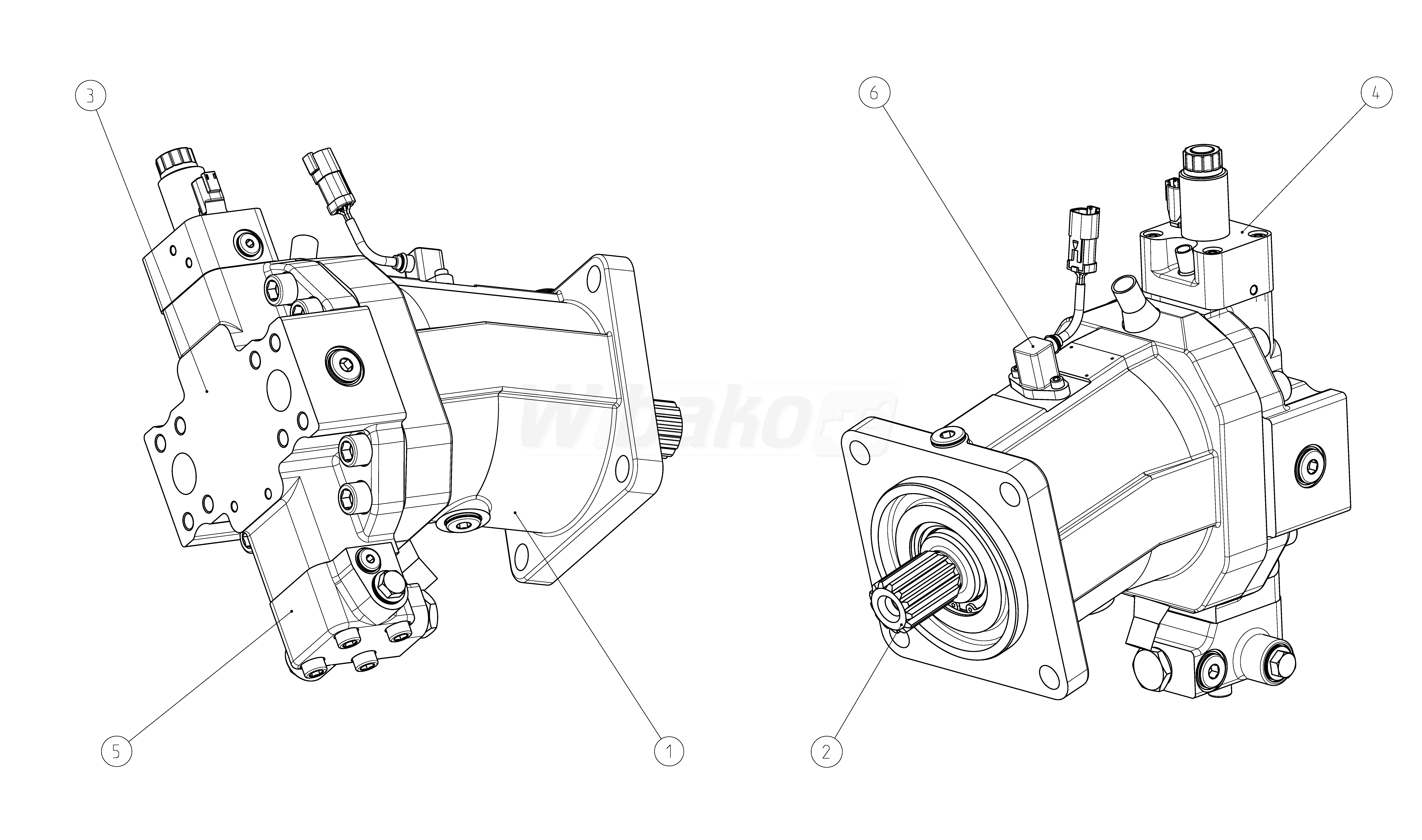 Axial piston variable motor A6VM Series 63. Geometric displacement 140 cm3. Control device: proportional control, electric, U = 12 V. Sealing material: FKM (fluoroelastomer). Splined shaft ANSI B92.1a. Mounting flange ISO 3019-2, SAE J744 ‒ 4-bolt 165-4. Without speed sensor.