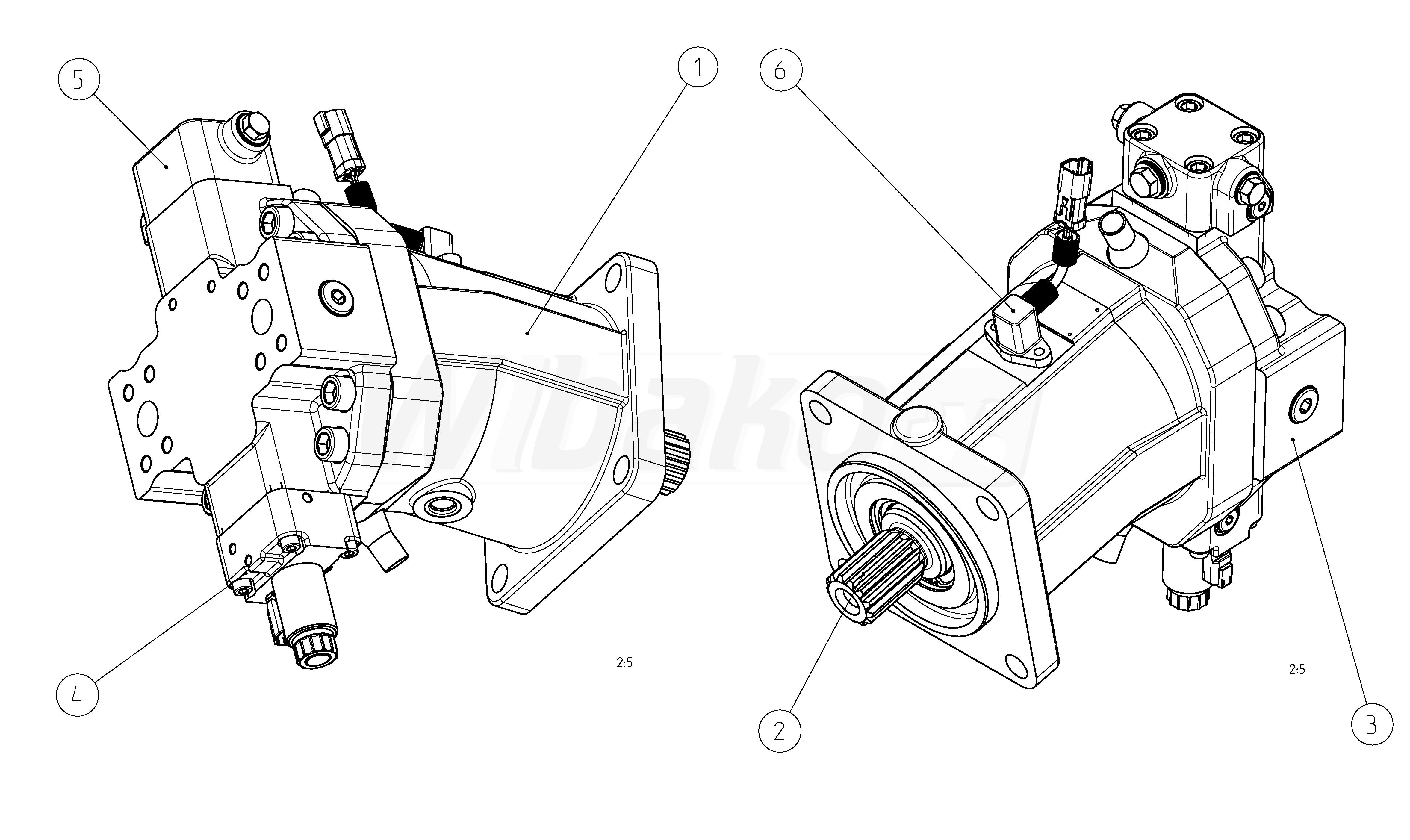Axial piston variable motor A6VM Series 63. Geometric displacement 140 cm3. Control device: proportional control, electric, U = 12 V. Sealing material: FKM (fluoroelastomer). Splined shaft ANSI B92.1a. Mounting flange ISO 3019-2, SAE J744 ‒ 4-bolt 165-4.
