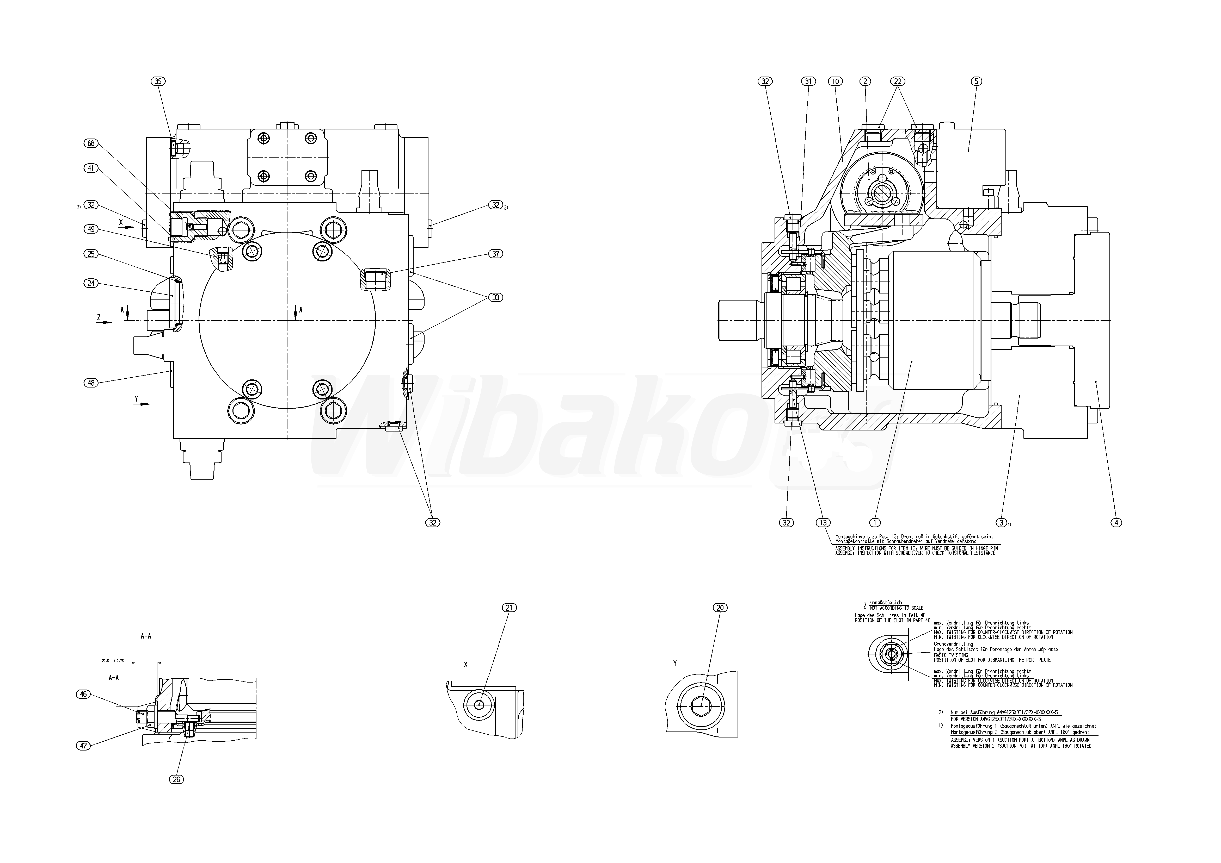 Axial piston variable pump A4VG. Geometric displacement 125 cm3. Pressure cut-off. Series 3, index 2. Direction of rotation (viewed on drive shaft): clockwise. Sealing material: NBR (nitrile rubber), shaft seal in FKM (fluoroelastomer). Splined shaft ANSI B92.1a for single pump. Filtration in the boost pump pressure line. Ports for external boost circuit filtration (Fe and Fa).