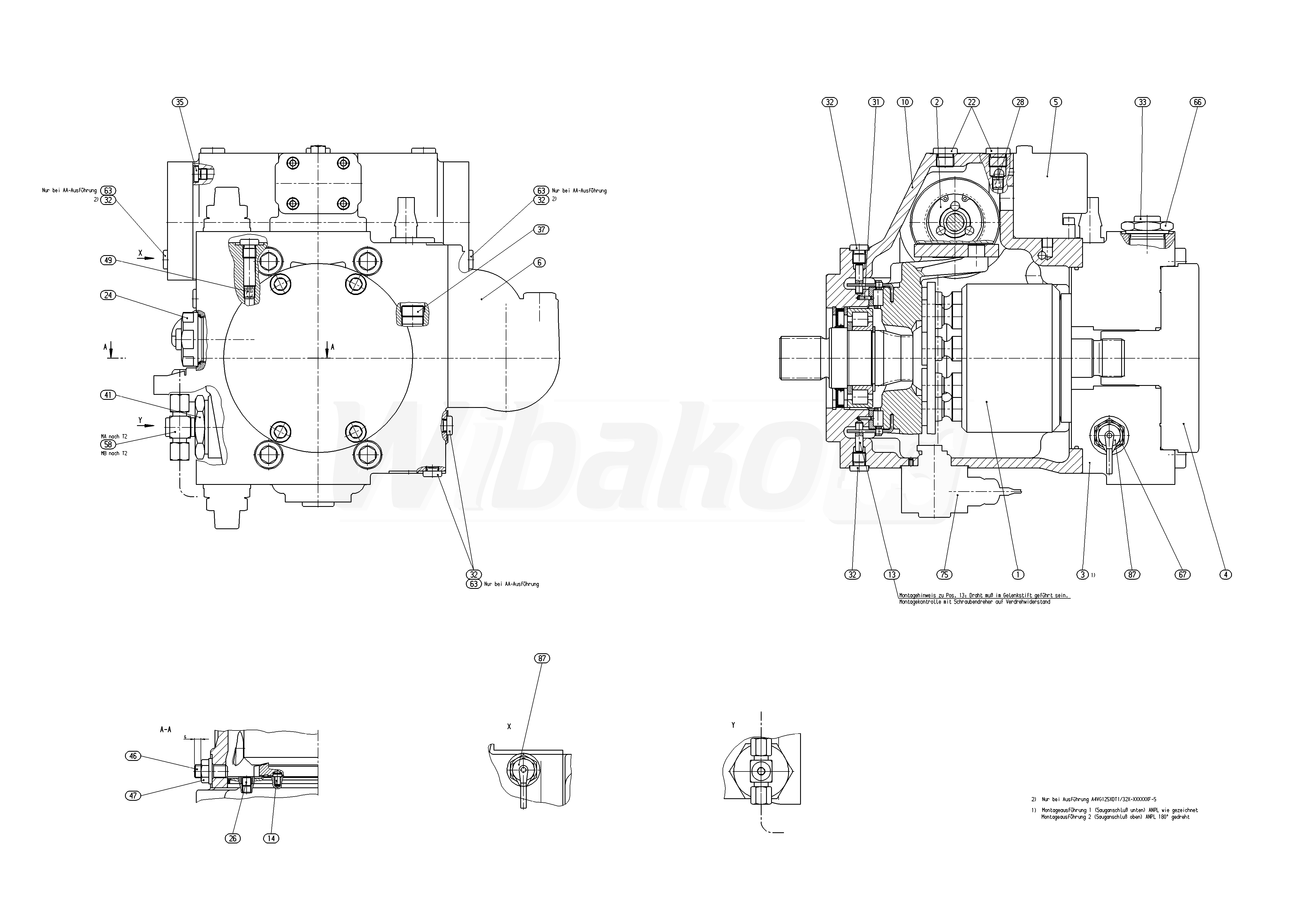 Axial piston variable pump A4VG. Geometric displacement 125 cm3. Pressure cut-off. Mechanical stroke limiter, externally adjustable. Without DA control valve. Series 3, index 2. Direction of rotation (viewed on drive shaft): clockwise. Sealing material: NBR (nitrile rubber), shaft seal in FKM (fluoroelastomer). Splined shaft DIN 5480 for single pump. Mounting flange SAE J744 2+4-hole. SAE working port A and B, top and bottom Suction port S bottom. Integrated boost pump. Without through drive. High pressure relief valve, pilot operated 100 to 420 bar with bypass.