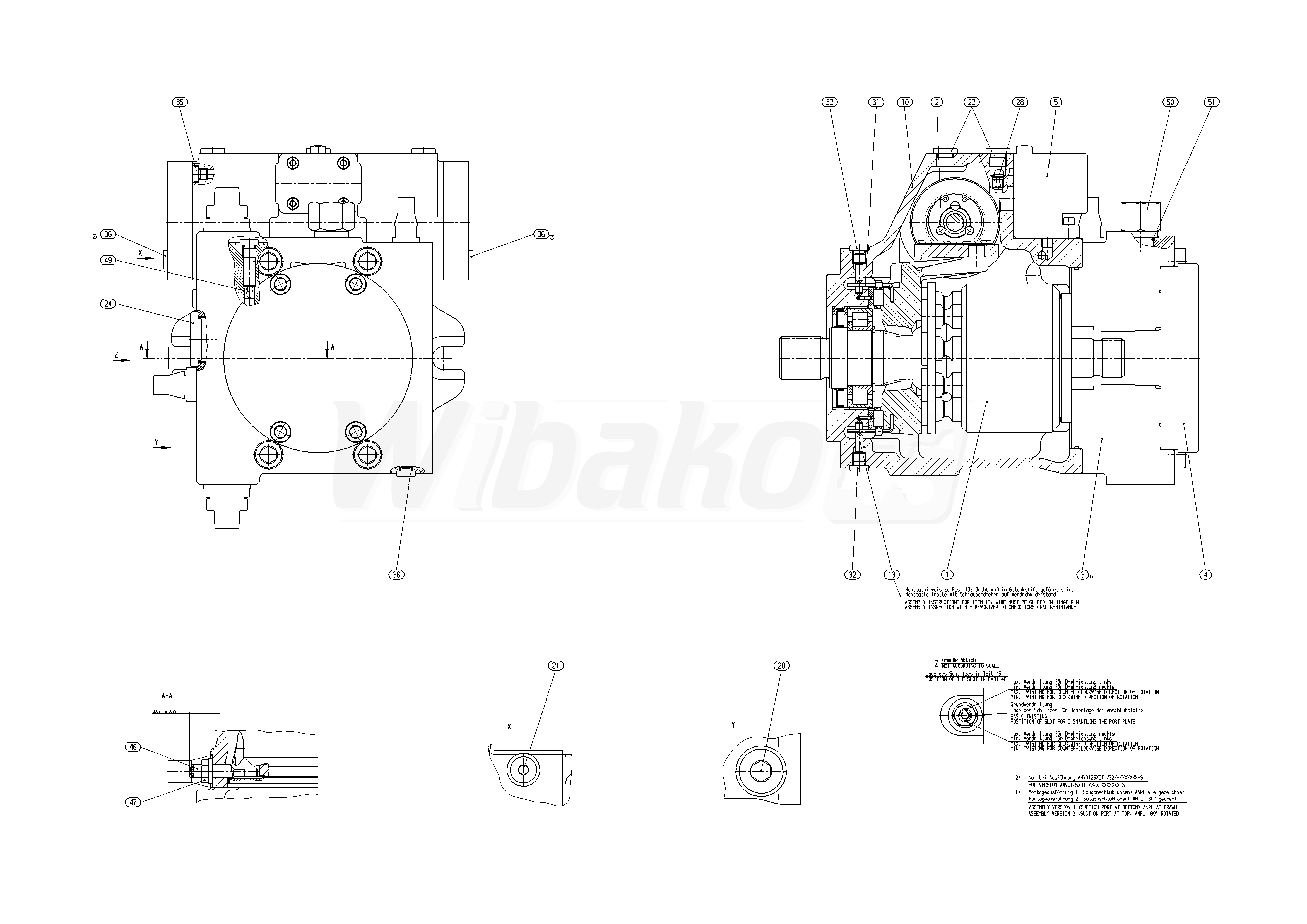Axial piston variable pump A4VG. Geometric displacement 125 cm3. Pressure cut-off. Without DA control valve. Series 3, index 2. Direction of rotation (viewed on drive shaft): counter-clockwise. Sealing material: NBR (nitrile rubber), shaft seal in FKM (fluoroelastomer). Splined shaft ANSI B92.1a for single pump. Mounting flange SAE J744 2+4-hole. SAE working port A and B, same side left. Suction port S bottom. Integrated boost pump. Without through drive. High pressure relief valve, pilot operated 100 to 420 bar with bypass.