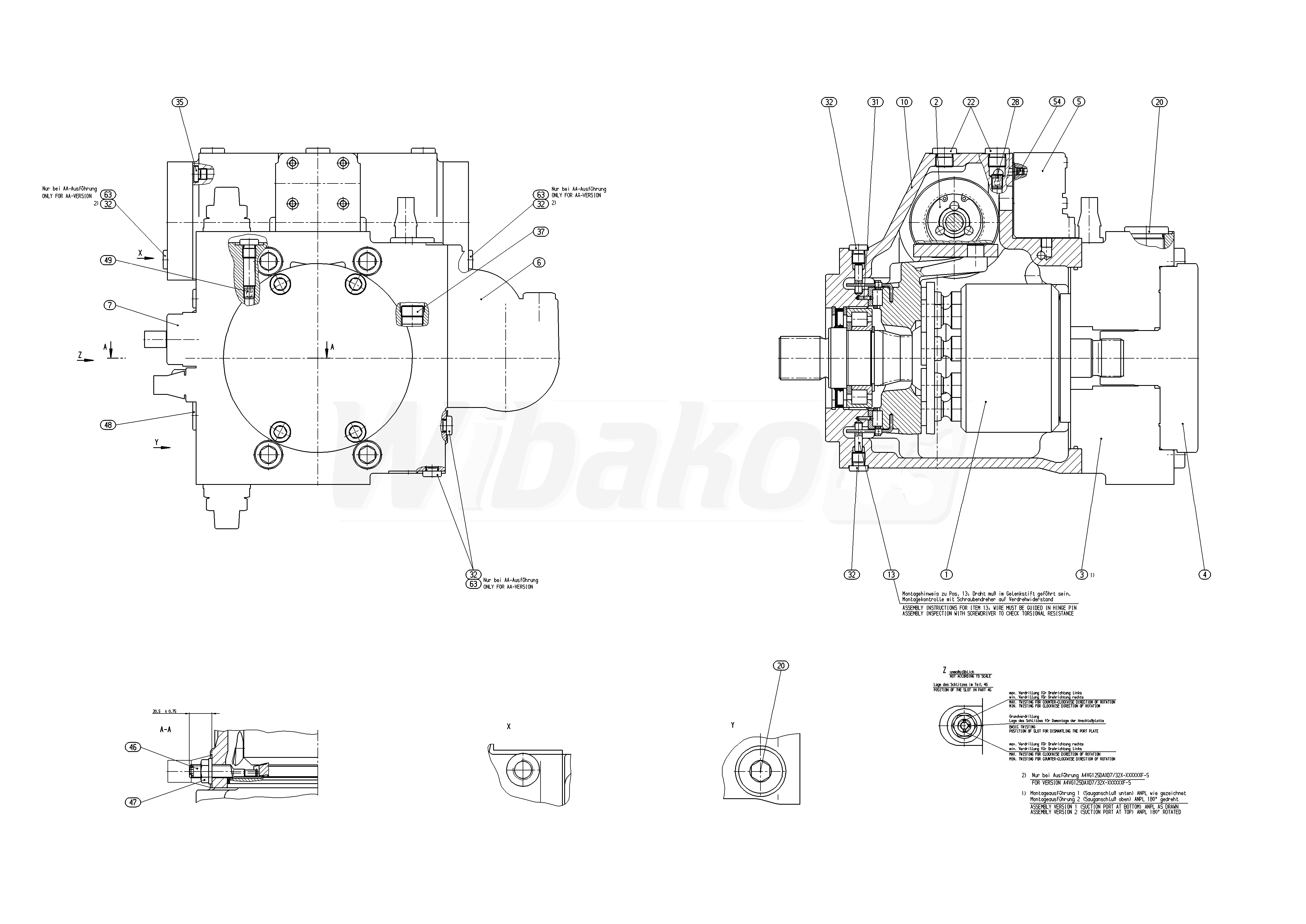 Axial piston variable pump A4VG. Geometric displacement 125 cm3. Automatic control, speed related U = 12 V. Pressure cut-off. DA control valve, fixed setting, ports for pilot control device. Series 3, index 2. Direction of rotation (viewed on drive shaft): clockwise. Sealing material: NBR (nitrile rubber), shaft seal in FKM (fluoroelastomer). Splined shaft DIN 5480 for single pump. Mounting flange SAE J744 2+4-hole. SAE working port A and B, top and bottom Suction port S bottom. Integrated boost pump. Flange SAE J744 101-2 (B), hub for splined shaft 7/8 in 13T 16/32DP. High pressure relief valve, pilot operated 100 to 420 bar with bypass. Filtration in the boost pump pressure line. Attachment filter with cold start valve. DEUTSCH molded connector, 2-pin with suppressor diode.