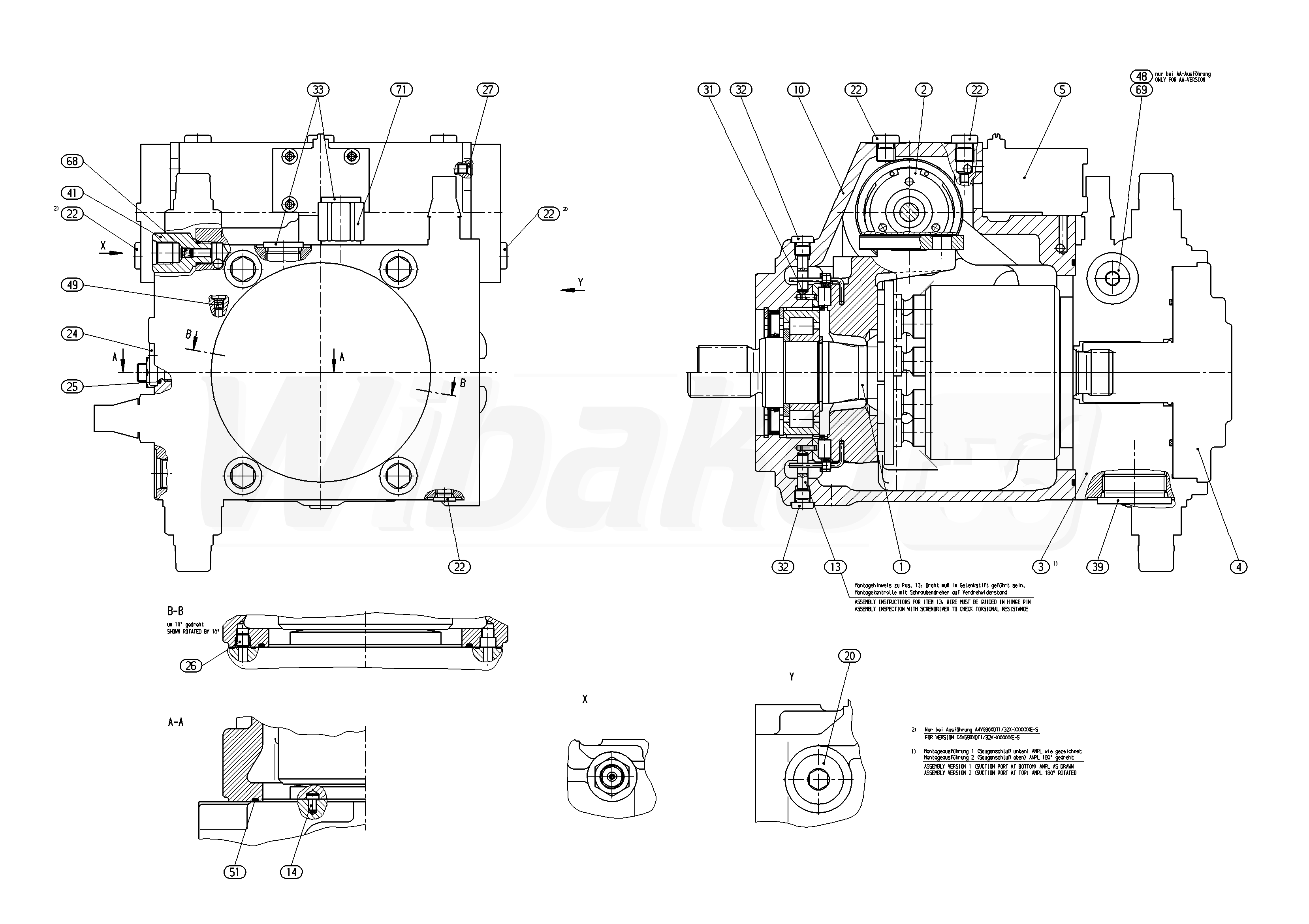 Axial piston variable pump A4VG. Geometric displacement 90 cm3. Proportional control, electric U = 12 V. Pressure cut-off. Without DA control valve. Series 3, index 2. Direction of rotation (viewed on drive shaft): clockwise. Sealing material: NBR (nitrile rubber), shaft seal in FKM (fluoroelastomer).