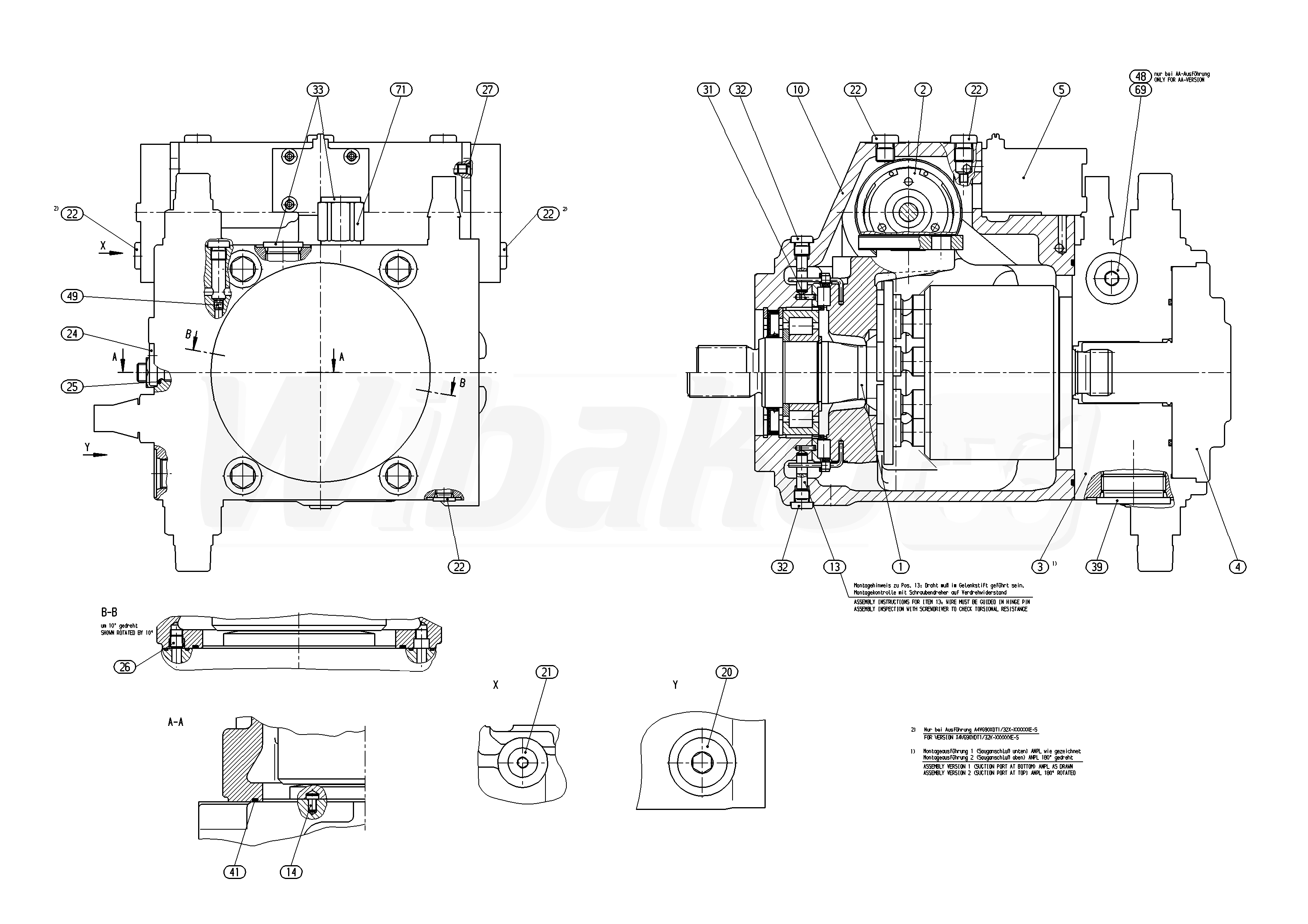 Axial piston variable pump A4VG. Geometric displacement 90 cm3. Proportional control, electric U = 12 V. Pressure cut-off. Without DA control valve. Series 3, index 2. Direction of rotation (viewed on drive shaft): clockwise. Sealing material: NBR (nitrile rubber), shaft seal in FKM (fluoroelastomer).