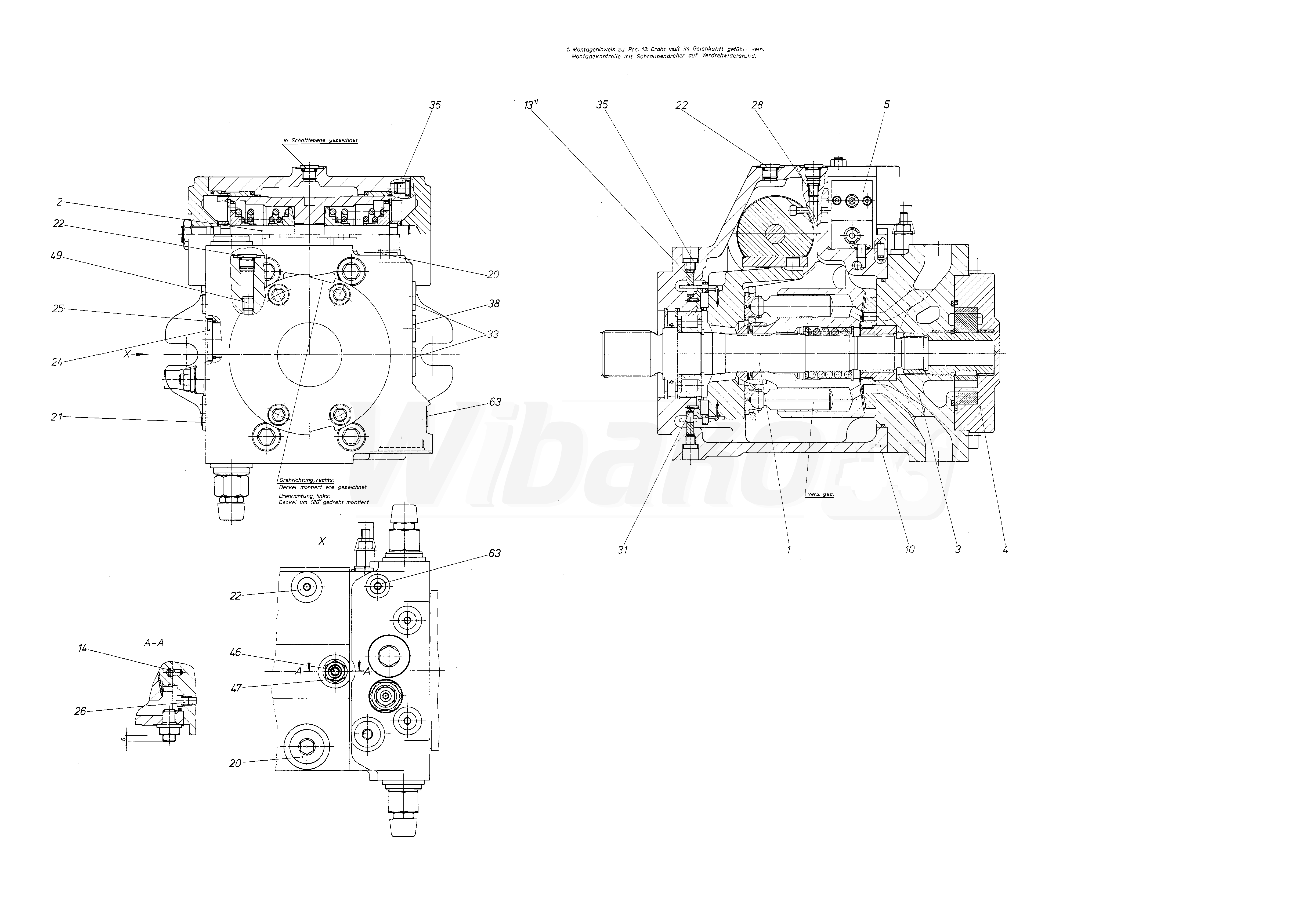 Axial piston variable pump A4VG. Geometric displacement 90 cm3. Series 3, index 2. Direction of rotation (viewed on drive shaft): counter-clockwise. Sealing material: NBR (nitrile rubber), shaft seal in FKM (fluoroelastomer).
