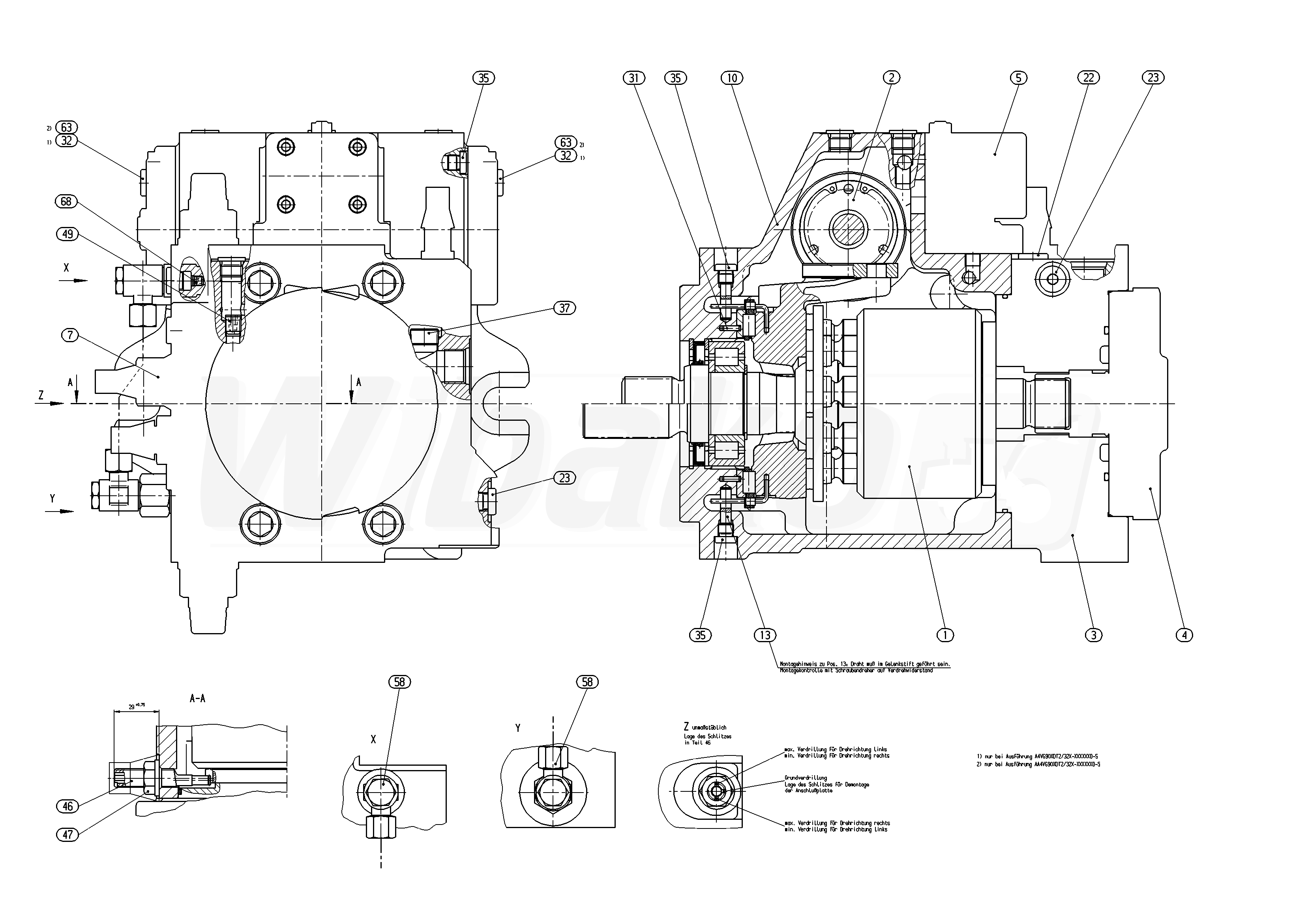 Axial piston variable pump A4VG. Geometric displacement 90 cm3. Series 3, index 2. Direction of rotation (viewed on drive shaft): clockwise. Sealing material: NBR (nitrile rubber), shaft seal in FKM (fluoroelastomer). Splined shaft DIN 5480 for single pump. Mounting flange SAE J744 2+4-hole.