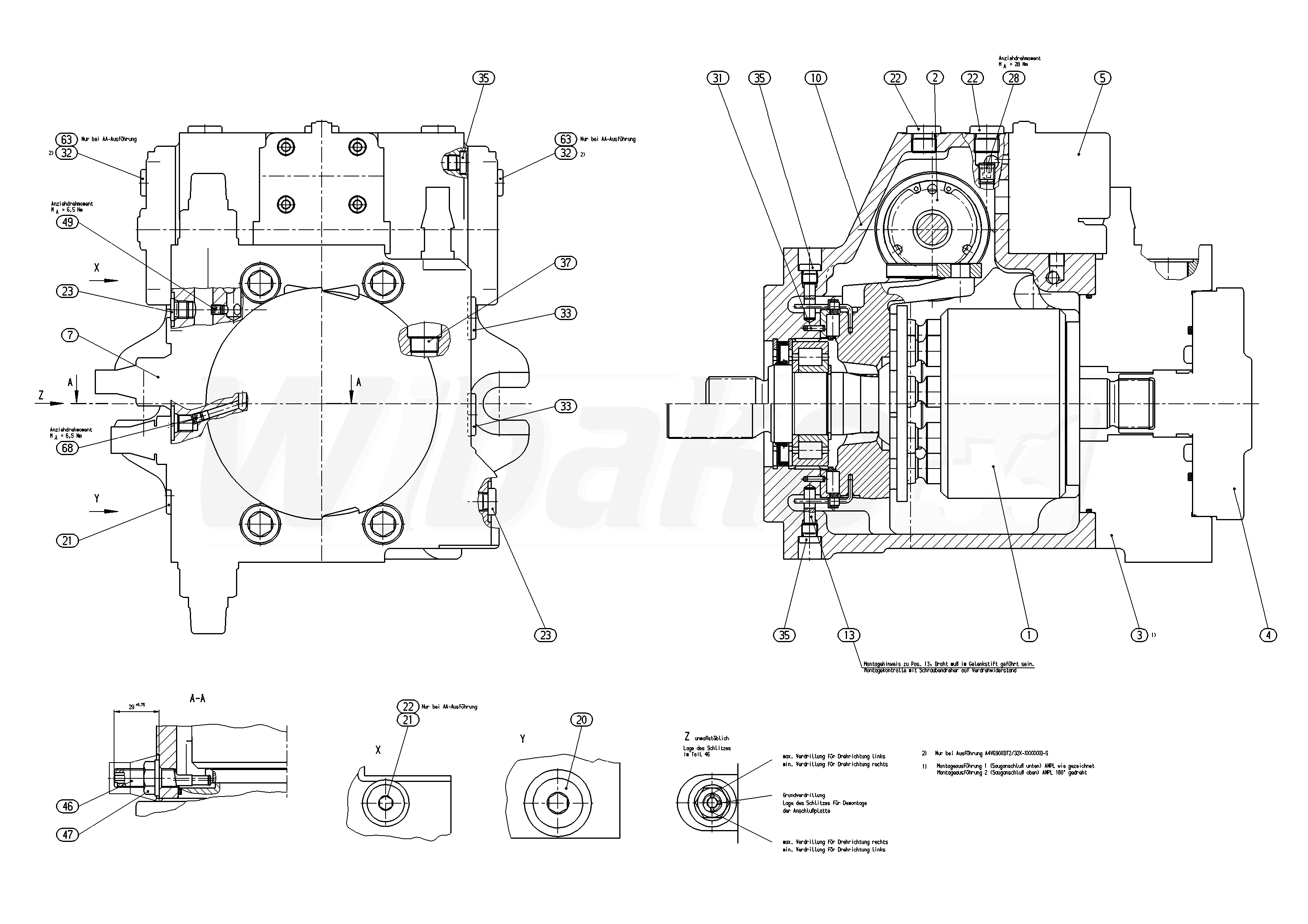 Axial piston variable pump A4VG. Geometric displacement 90 cm3. Series 3, index 2. Direction of rotation (viewed on drive shaft): clockwise. Sealing material: NBR (nitrile rubber), shaft seal in FKM (fluoroelastomer).