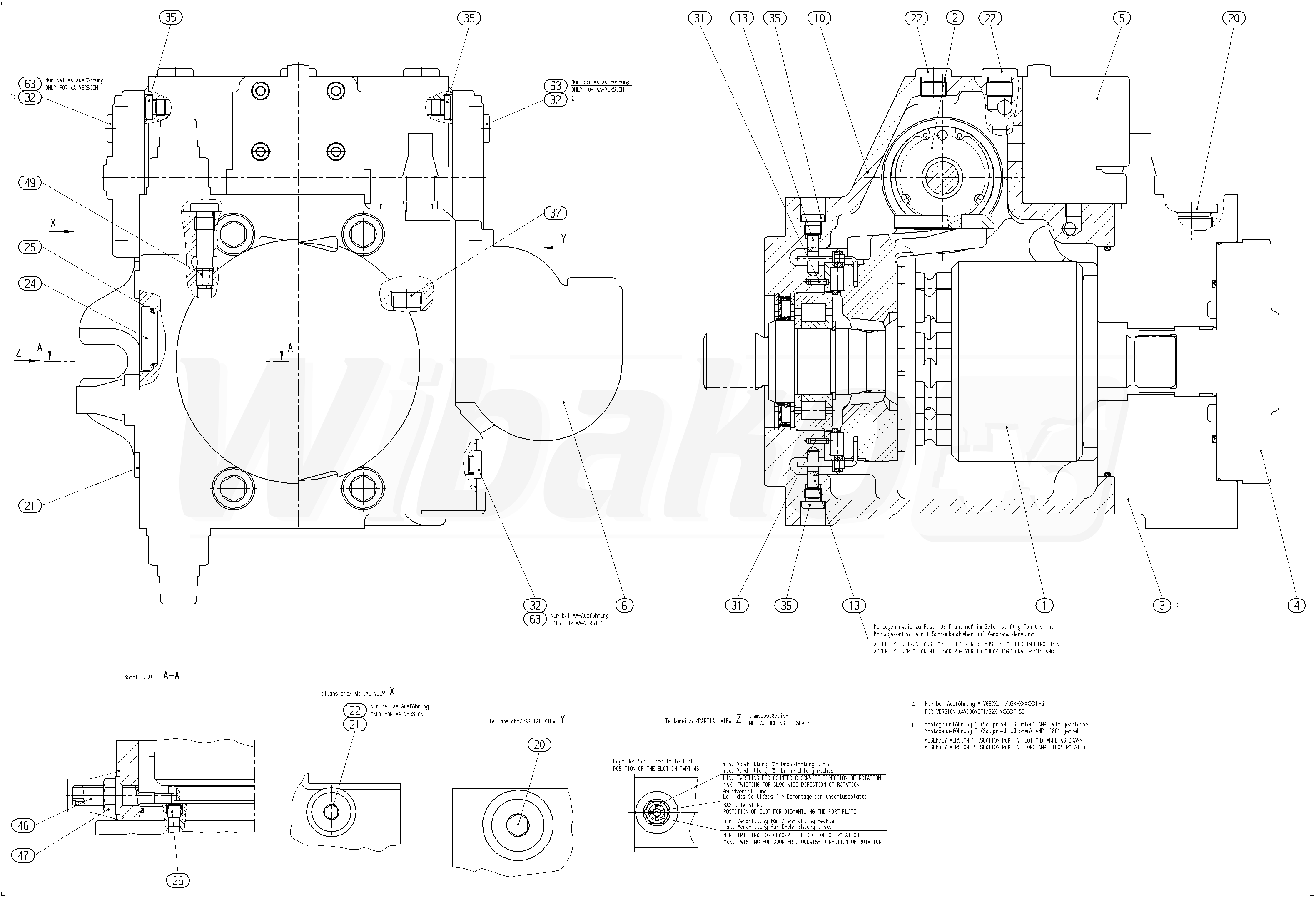 Axial piston variable pump A4VG. Geometric displacement 90 cm3. Series 3, index 2. Direction of rotation (viewed on drive shaft): clockwise. Sealing material: NBR (nitrile rubber), shaft seal in FKM (fluoroelastomer).