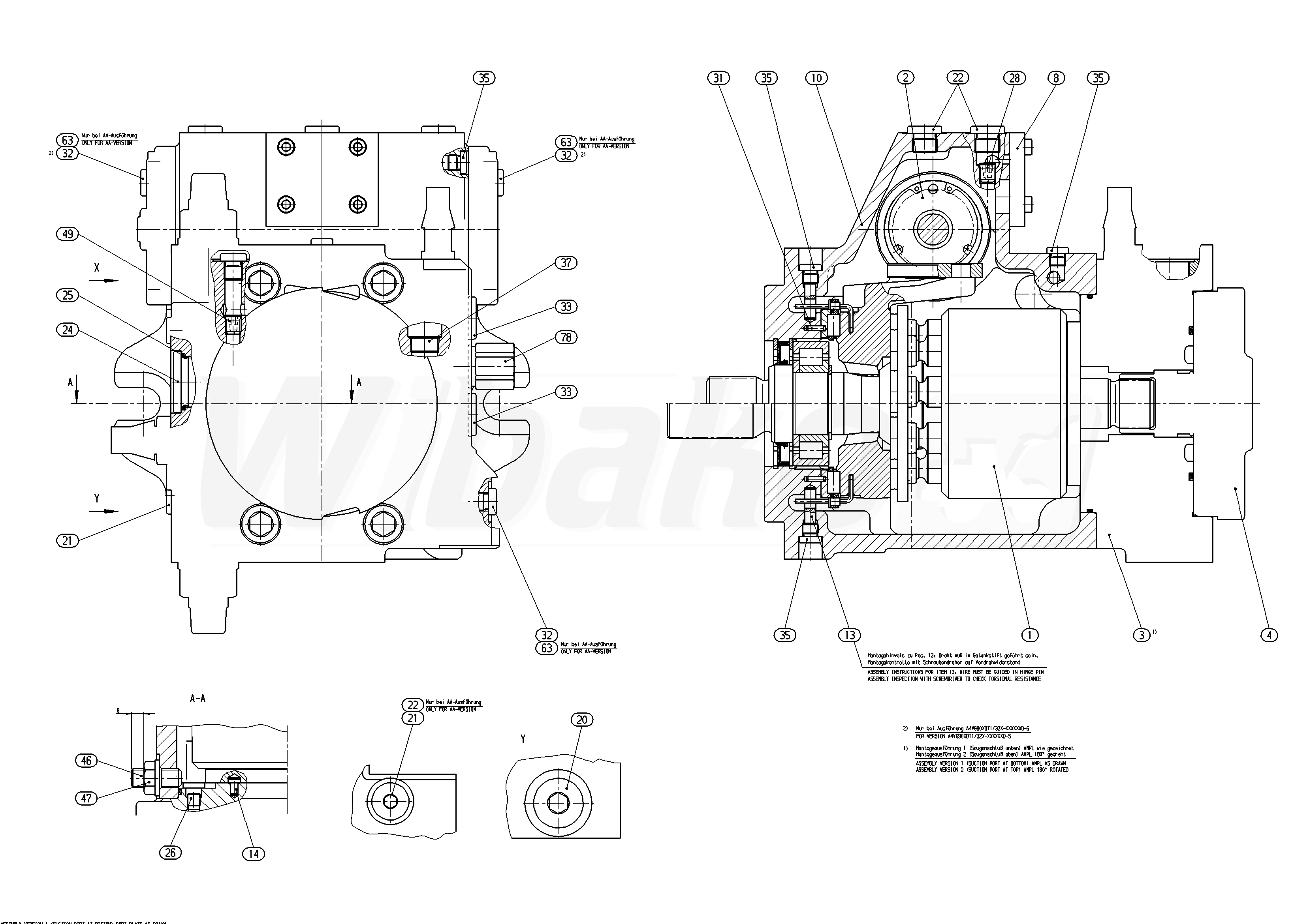 Axial piston variable pump A4VG. Geometric displacement 90 cm3. Without control module. Pressure cut-off. Mechanical stroke limiter, externally adjustable. Without DA control valve. Series 3, index 2. Direction of rotation (viewed on drive shaft): clockwise. Sealing material: NBR (nitrile rubber), shaft seal in FKM (fluoroelastomer). Splined shaft ANSI B92.1a for single pump. Mounting flange SAE J744 2+4-hole. Integrated boost pump. Without through drive. High pressure relief valve, pilot operated 100 to 420 bar with bypass. Filtration in the boost pump pressure line. Ports for external boost circuit filtration (Fe and Fa).