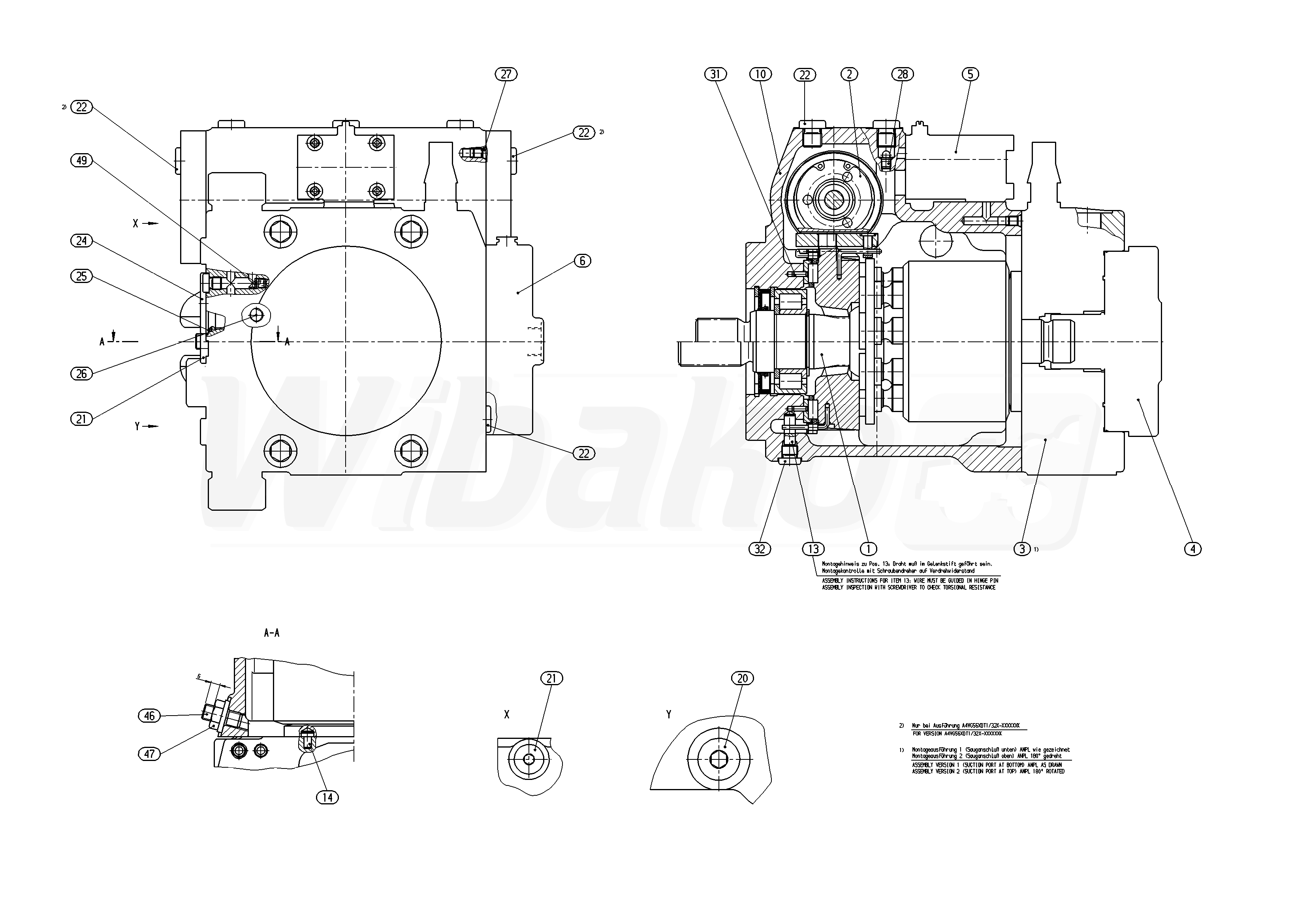 Axial piston variable pump A4VG. Geometric displacement 56 cm3. Series 3, index 2. Direction of rotation (viewed on drive shaft): counter-clockwise. Sealing material: NBR (nitrile rubber), shaft seal in FKM (fluoroelastomer). Splined shaft ANSI B92.1a for single pump. Mounting flange SAE J744 2-hole. Integrated boost pump. Without through drive. High-pressure relief valve, direct operated, fixed setting 250 to 420 bar without bypass.