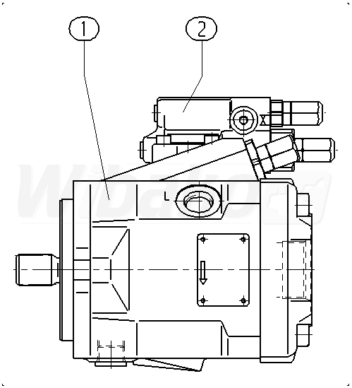 Axial piston variable pump A10VO, swashplate design, open circuit, nominal pressure 250 bar, maximum pressure 315 bar. Series 52. Geometric displacement 28 cm3. Pressure controller, hydraulic. Directions of rotation: clockwise (viewed on drive shaft). Splined shaft ISO 3019-1, standard. Mounting flange ISO 3019-1 (SAE) 2-hole.