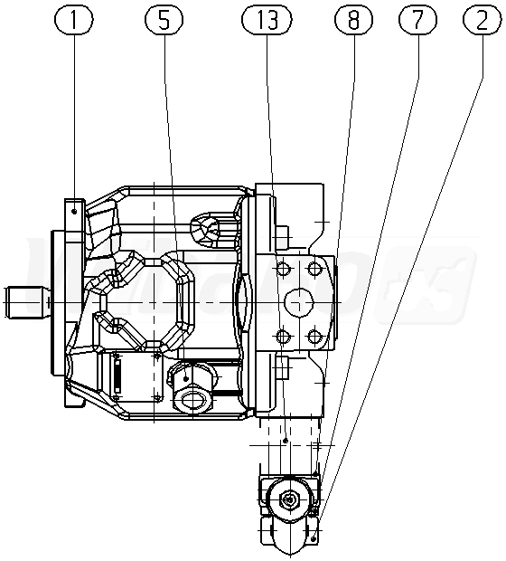Axial piston variable pump A10V, swashplate design, open circuit, nominal pressure 280 bar, maximum pressure 350 bar. Series 31. Geometric displacement 28 cm3. Pressure controller, hydraulic. Sealing material: FKM (fluoroelastomer). Drive splined shaft ANSI B92.1a. Mounting flange ISO 3019-1 (SAE) 2-hole. SAE flange ports according to J518. Working ports metric. Fastening thread metric; lateral top bottom for through drive. Without through drive. DEUTSCH - molded connector, 2-pin, without suppressor diode.