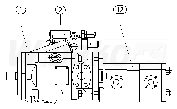 Axial piston variable pump A10VO, swashplate design, open circuit, nominal pressure 250 bar, maximum pressure 315 bar. Series 52. Geometric displacement 28 cm3. Pressure controller with pressure cut-off, hydraulic, remote controlled. Directions of rotation: counter-clockwise (viewed on drive shaft). Splined shaft ISO 3019-1, standard. Mounting flange ISO 3019-1 (SAE) 2-hole. SAE flange ports, fastening thread metric, laterally opposite, for through drive.