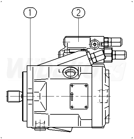 Axial piston variable pump A10VO, swashplate design, open circuit, nominal pressure 250 bar, maximum pressure 315 bar. Series 52. Geometric displacement 28 cm3. Pressure controller with pressure cut-off, hydraulic, remote controlled. Directions of rotation: counter-clockwise (viewed on drive shaft). Splined shaft ISO 3019-1, standard. Mounting flange ISO 3019-1 (SAE) 2-hole.
