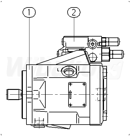 Axial piston variable pump A10VO, swashplate design, open circuit, nominal pressure 250 bar, maximum pressure 315 bar. Series 52. Geometric displacement 28 cm3. Pressure controller with pressure cut-off, hydraulic, remote controlled. Directions of rotation: counter-clockwise (viewed on drive shaft). Splined shaft ISO 3019-1, standard. Mounting flange ISO 3019-1 (SAE) 2-hole.
