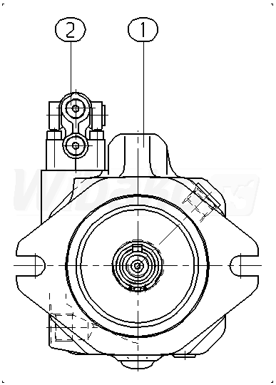 Axial piston variable pump A10VO, swashplate design, open circuit, nominal pressure 250 bar, maximum pressure 315 bar. Series 52. Geometric displacement 28 cm3. Pressure controller with pressure cut-off, hydraulic, remote controlled. Directions of rotation: counter-clockwise (viewed on drive shaft). Seal: FKM (fluoroelastomer). Mounting flange ISO 3019-1 (SAE) 2-hole.