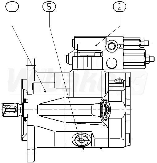 Axial piston variable pump A10VO, swashplate design, open circuit, nominal pressure 250 bar, maximum pressure 315 bar. Series 52. Geometric displacement 28 cm3. Pressure controller with pressure cut-off, hydraulic, remote controlled. Directions of rotation: counter-clockwise (viewed on drive shaft). Seal: FKM (fluoroelastomer). Splined shaft ISO 3019-1, standard. Mounting flange ISO 3019-1 (SAE) 2-hole.
