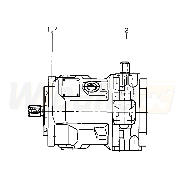 Axial piston variable pump A10V, swashplate design, open circuit, nominal pressure 280 bar, maximum pressure 350 bar. Series 31. Geometric displacement 28 cm3. Pressure controller, hydraulic. Drive splined shaft ANSI B92.1a. Mounting flange ISO 3019-1 (SAE) 2-hole. SAE flange ports according to J518 Working ports UNF. Fastening thread UNF; lateral top bottom, for through drive. Through drive. Flange ISO 3019-1 82-2 (A). Hub for splined shaft 5/8 in 9T 16/32DP.