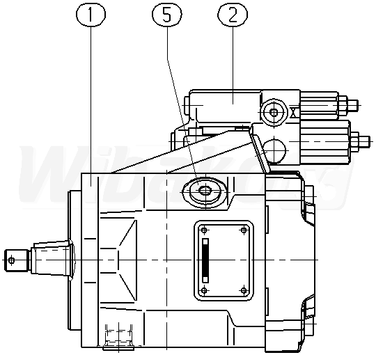 Axial piston variable pump A10VO, swashplate design, open circuit, nominal pressure 250 bar, maximum pressure 315 bar. Series 52. Geometric displacement 28 cm3. Pressure controller with pressure cut-off, hydraulic, remote controlled. Directions of rotation: clockwise (viewed on drive shaft). Seal: FKM (fluoroelastomer). Mounting flange ISO 3019-1 (SAE) 2-hole.