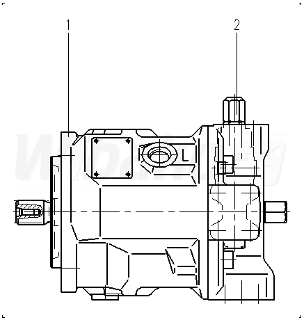 Axial piston variable pump A10V, swashplate design, open circuit, nominal pressure 280 bar, maximum pressure 350 bar. Series 31. Geometric displacement 28 cm3. Pressure controller with pressure cut-of, hydraulic, remote controlledDrive splined shaft ANSI B92.1a. Mounting flange ISO 3019-1 (SAE) 2-hole. SAE flange ports according to J518 Working ports UNF. Fastening thread UNF; lateral top bottom, for through drive. Without through drive.