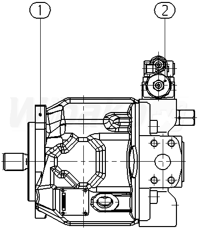 Axial piston variable pump A10V, swashplate design, open circuit, nominal pressure 280 bar, maximum pressure 350 bar. Series 31. Geometric displacement 28 cm3. Pressure controller with flow controller, hydraulic, X-T plugged with flushing function. Drive splined shaft ANSI B92.1a. Mounting flange ISO 3019-1 (SAE) 2-hole. SAE flange ports according to J518 Working ports UNF. Fastening thread UNF; lateral top bottom, for through drive. Without through drive.