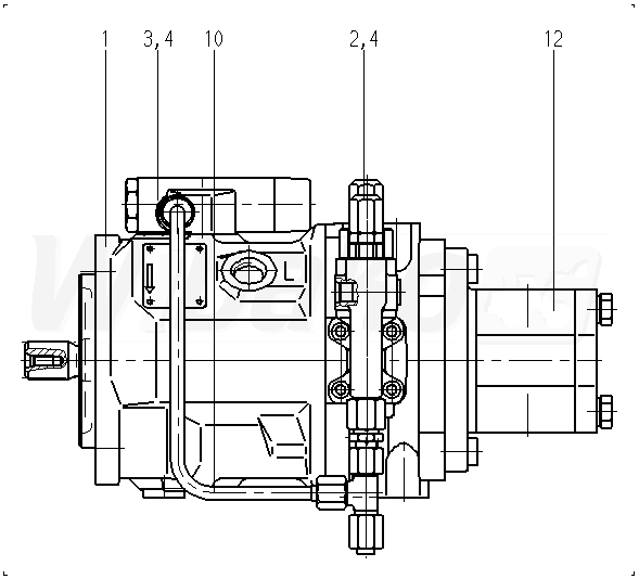 Axial piston variable pump , swashplate design, open circuit, nominal pressure 280 bar, maximum pressure 350 bar. Series 31. High-speed version. Geometric displacement 10 cm3. Drive splined shaft ANSI B92.1a. Mounting flange ISO 3019-1 (SAE) 2-hole. SAE flange ports according to J518 Working ports UNF. Fastening thread UNF; lateral top bottom, for through drive.