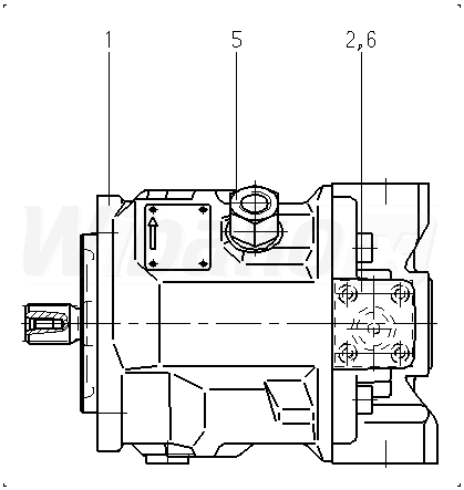 Axial piston variable pump A10V, swashplate design, open circuit, nominal pressure 280 bar, maximum pressure 350 bar. Series 31. Geometric displacement 28 cm3. Two-point control, direct operated. Sealing material: FKM (fluoroelastomer). Drive splined shaft ANSI B92.1a. Mounting flange ISO 3019-1 (SAE) 2-hole. SAE flange ports according to J518. Working ports metric. Fastening thread metric; lateral top bottom for through drive. Without through drive.