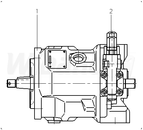Axial piston variable pump A10V, swashplate design, open circuit, nominal pressure 280 bar, maximum pressure 350 bar. Series 31. Geometric displacement 28 cm3. Pressure controller with pressure cut-of, hydraulic, remote controlledMounting flange ISO 3019-1 (SAE) 2-hole.
