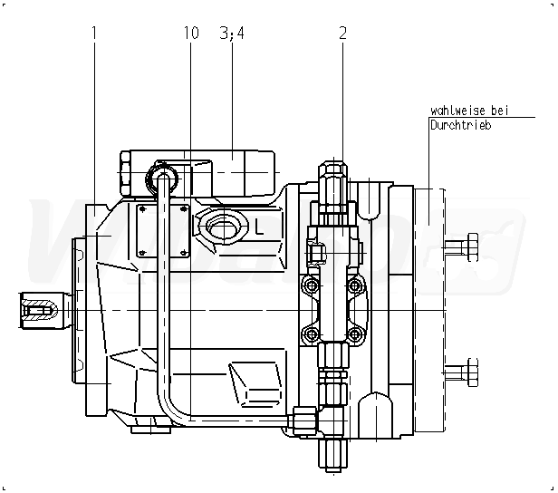 Axial piston variable pump , swashplate design, open circuit, nominal pressure 280 bar, maximum pressure 350 bar. Series 31. High-speed version. Geometric displacement 10 cm3. Drive splined shaft ANSI B92.1a. Mounting flange ISO 3019-1 (SAE) 2-hole. SAE flange ports according to J518 Working ports UNF. Fastening thread UNF; lateral top bottom, for through drive. Through drive. Flange ISO 3019-1 82-2 (A). Hub for splined shaft 5/8 in 9T 16/32DP.