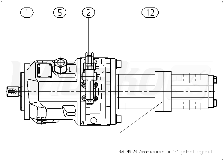 Axial piston variable pump A10V, swashplate design, open circuit, nominal pressure 280 bar, maximum pressure 350 bar. Series 31. Geometric displacement 28 cm3. Pressure controller, hydraulic. Drive splined shaft ANSI B92.1a. Mounting flange ISO 3019-1 (SAE) 2-hole. SAE flange ports according to J518. Working ports metric. Fastening thread metric; lateral top bottom for through drive.
