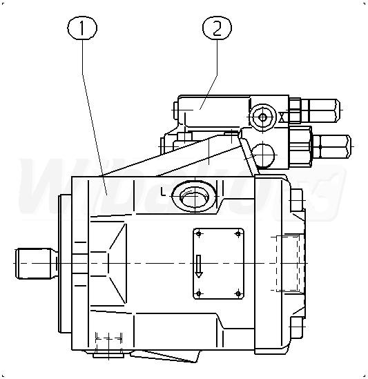 Axial piston variable pump A10VO, swashplate design, open circuit, nominal pressure 250 bar, maximum pressure 315 bar. Series 52. Geometric displacement 28 cm3. Pressure controller, hydraulic. Directions of rotation: clockwise (viewed on drive shaft). Splined shaft ISO 3019-1, standard. Mounting flange ISO 3019-1 (SAE) 2-hole.